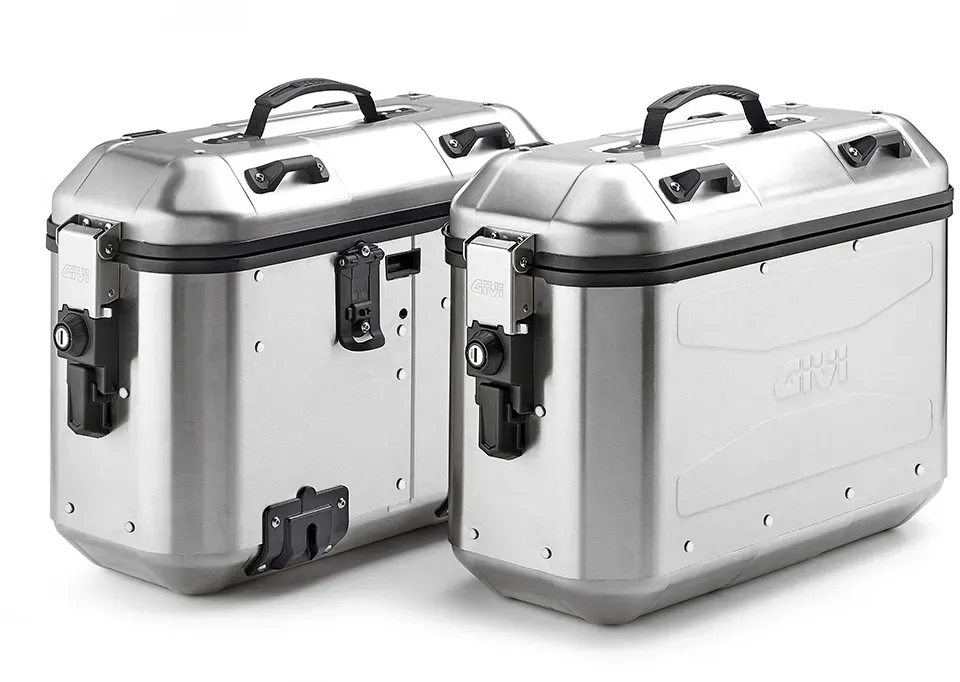 Kategorie: Motorradkoffer - GIVI - GTIN:8019606270450 - Aluminium natur Koffersatz mit jeweils 36 Litern Fassungsvermögen, inklusive 3. Schloß zum Einbau in ein alternatives Topcase, um alle 3 Koffer gleichschliessend zu haben. Das MONOKEY -Befestigungssystem ermöglicht das öffnen und Lösen vom Rahmen mit demselben Schlüssel und einem einzigen Schloss. Die Koffer sind kompatibel mit den Rundrohr-Seitengepäckträgern PL_ _ _, PLR_ _ _, PLO_ _ _, PLOR_ _ _. Eigenschaften: WIRELEASE SYSTEM: Das Lösen der Koffer vom Seitenrahmen erfolgt durch Drehen eines Außenknaufs, der mit einem Kabelsystem ausgestattet ist und sich direkt unter dem Sicherheitsschloss befindet. Ein Drehen des Knaufes ist jedoch nicht erforderlich, um den Koffer einrasten zu lassen. HOLD IT EASY SYSTEM: Der Trekker Dolomiti ist mit einem Hakensystem ausgestattet, mithilfe dessen er gekippt werden kann, ohne ihn vollständig vom Tragrahmen zu lösen. Dieses mechanische System wurde speziell entwickelt, um ein versehentliches Herunterfallen der Koffer zu verhindern und die Be- und Entladephasen auch dann zu erleichtern, wenn ein sehr sperriges Topcase vorhanden ist, dass die Zugänglichkeit und das öffnen des Deckels einschränken könnte. Das 'Hold It Easy System' ist mit einigen Monokey-Trägermodellen nicht kompatibel (Das System ist im Lieferumfang des Koffers enthalten und wird lose mitgeliefert, um Transportprobleme zu vermeiden. Der Kunde kann entscheiden, ob er es installieren möchte). | Artikel: GIVI Trekker ... Dieses schwarze 36 Liter ALU-Koffer Set ist eine Premium-Option für anspruchsvolle Motorradfahrer, die Wert auf Design und Funktionalität legen. ![]() ![]() GIVI Trekker 36 Dolomiti ALU-Koffer Satz Monokey schwarz, 36 L Volumen, schwarz