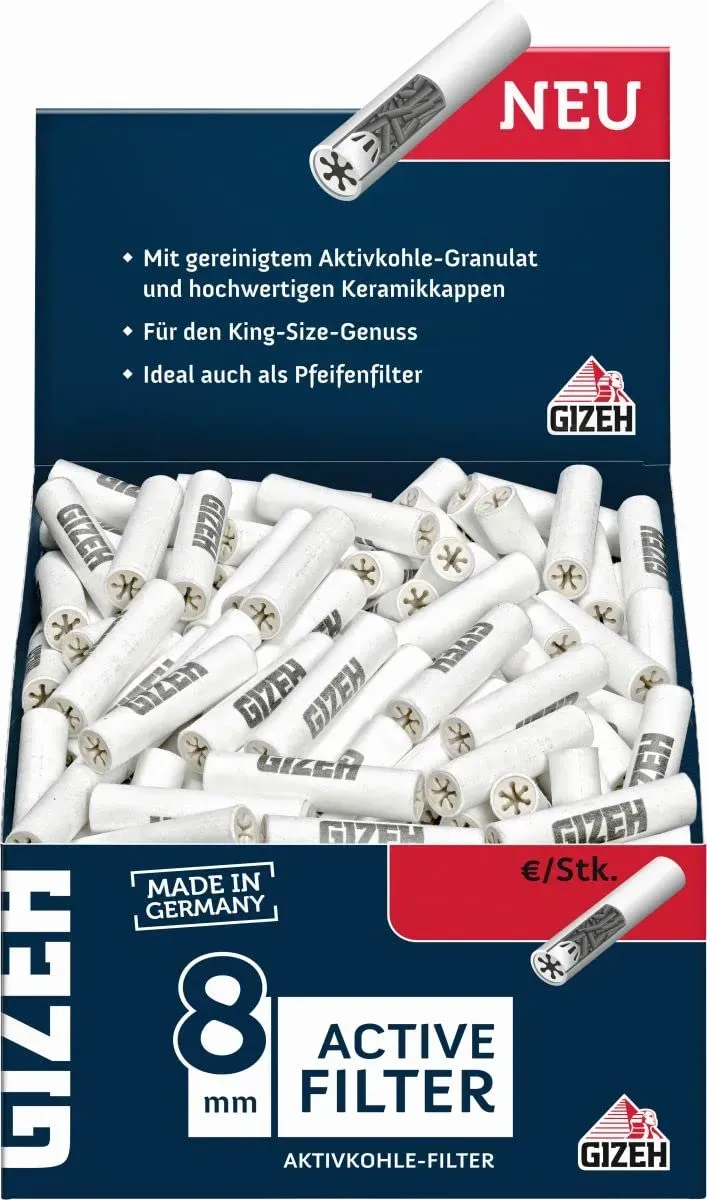 Zusammenfassung für die Kaufentscheidung: | Merkmal | Empfehlung / Beliebtheit | |--------------------------|------------------------------------------------| | Filtertyp | Slim-Filter 6 mm (Standard für King-Size) | | Aktivkohle | Sehr beliebt für bessere Filterung und Geschmack| | Keramikkappen | Für optimalen Zugwiderstand und Mehrfachnutzung| | Verpackung | Wieder verschließbar mit Zip-Verschluss | | Preis | Ca. 6 € pro 34 Aktivkohlefilter, Bundles günstiger| | Markenqualität | Gizeh 'Made in Germany' gilt als zuverlässig | Wenn Sie Gizeh Filter kaufen möchten, können Sie gezielt nach Gizeh Slim Aktivkohlefiltern 6 mm oder Gizeh Black Active Filter suchen, da diese Modelle besonders beliebt und gut bewertet sind. Beispielprodukte zur Suche im Meta-Preisvergleich: Diese Filter sind gut geeignet für ein angenehmes Raucherlebnis mit effektiver Schadstoffreduktion und guter Handhabung[1][2][4][5]. Jetzt live Suche nach gizeh filter starten! Empfohlene Gizeh filter Angebote*Durch Käufe über Links zu Händlern kann diese Website eine Provision erhalten, u.a. durch das eBay Partner Network und das AmazonPartnerNetHier ist eine Auswahl von 15 repräsentativen und empfehlenswerten Gizeh Filtern aus der Gesamtliste, die verschiedene Preisbereiche und Filterarten abdecken: Dieses Angebot ist eine günstige Option für Nutzer, die Gizeh Carbon Filter (Hülsen) in kleinerer Menge ausprobieren möchten. ![]() ![]() Gizeh Carbon - 100 Filter eBay Filterhülsen / Zigarettenhülsen / Hülsen Aktivkohle