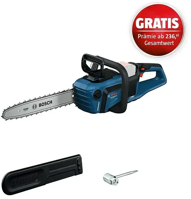 Kettensägen Garten & Freizeit Schneidwerkzeuge für den Garten Kettensägen Akku-Kettensägen Elektrogartenwerkzeug - EAN:4064677139940 - Lieferumfang: - 1x Bosch GKE18V-40 Professional Akku Kettensäge - 1x Kettenabdeckung ( 1 600 A02 0C8 ) - 1x Schlüssel ( 1 600 A02 UG7 ) - 1x Bosch ProCORE 18 V 5,5 Ah Professional Akku - 1x Bosch GAL 18V-40 Professional Ladegerät Produktbeschreibung: Die Bosch GKE 18V-40 Professional Akku Kettensäge ist die ideale Wahl für Zimmerei- und Gartenarbeiten und bietet mit der BITURBO Brushless Technologie eine beeindruckende Leistung ohne Abgase und mit geringem Geräuschpegel - optimal für lärmempfindliche Bereiche. Das 40-cm-Schwert ermöglicht kontinuierliches Sägen von Balken, Bauholz und dicken Ästen, sodass die Kettensäge vielseitig einsetzbar ist. Dank der OptiCut-Funktion passt sich die Drehzahl und das Drehmoment automatisch an, um lästiges Stehenbleiben bei höherer Last zu verhindern, während die elektronische Motorbremse die Kette nach dem Loslassen des Auslösers sofort stoppt. Der robuste bürstenlose Motor kombiniert hohe Leistung mit langer Lebensdauer und minimalem - gefunden von Kelkoo Dieses Set beinhaltet einen leistungsstarken 8,0 Ah Akku und Ladegerät, perfekt für längere Einsätze. ![]() ![]() Bosch GKE 18V-40 Professional Kettensäge inkl. 8,0 Ah Akku + Ladegerät