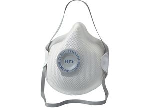 Berufsbekleidung Mode Arbeits- Haushaltskleidung - - Atemschutzmaske FFP2 NR D, ohne Ausatemventil, VE 20 Stk, weiß. Anlieferung = montiert. Schutzklasse = FFP2. Ausstattung = ohne Ventil. Ausführung = Einweg. Anwendungsbereich = Industrie, Labor, Garten- und Landschaftsbau, Viren. Norm = EN 149:2001+A1:2009. Farbe = weiß. Produkttyp = Partikelmasken. Hochleistungsfilter. Zuverlässiger Schutz gegen Partikel. Robustes Maskengitter hält die Maske in Form. Weiches, hautverträgliches Vlies auf der Innenseite. 100% Made in EU. Das flexible ActivForm®-3D-Design passt sich automatisch der Form und den Bewegungen von Gesichtern an. Dadurch sitzen MOLDEX-Masken dicht und komfortabel, ganz einfach und ohne Nasenclip. Die durchgehende Bebänderung erlaubt die Feinjustierung der Zugverteilung am Kopf. Unser DuraMesh®-Maskengitter hält die Atemschutzmaske selbst unter härtesten Bedingungen in Form. Für zusätzlichen Komfort sorgt ein weiches, hautverträgliches Innenvlies. FFP2-Masken schützen gegen gesundheitsschädliche Partikel auf Wasser- und ölbasis, nicht jedoch gegen krebserzeugende Stoffe, radioaktive Partikel, luftgetragene biologische Arbeitsstoffe der Risikogruppe 3 und Enzyme. Die Gesamtleckage (Undichtigkeit) beträgt maximal 8%, mindestens 94% der Schadstoffe werden aus der Luft gefiltert. Typische Anwendungen für eine FFP2-Maske sind beispielsweise der Umgang mit Weichholz, Glasfasern, Metall, Kunststoffen (nicht PVC) und ölnebel. Nicht wiederverwendbar . Im Zusammenhang mit ... ![]() MOLDEX Atemschutzmaske FFP2 NR D, mit Ausatemventil, VE 20 Stk, weiß