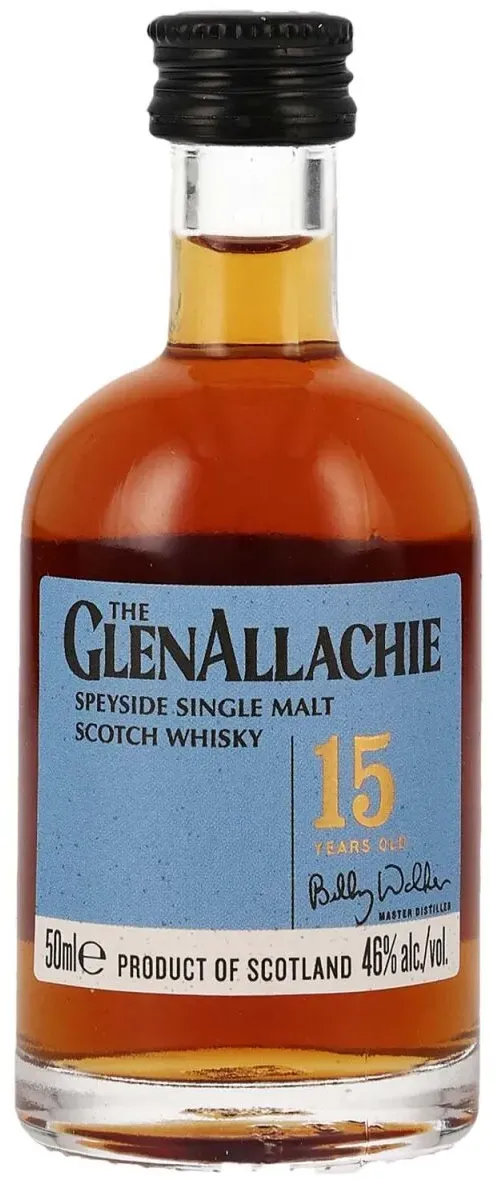 Zustand: Neu - 150,00 € / l - Whisky - Glenallachie THE GLENALLACHIE DISTILLERS COMPANY LIMITED - 910031 - EAN: 5060568320960 - Tasting Notes: Zimt, Sternanis, Vanille-Aromen, dunkle Schokolade, Karamell, Banane, süße Gewürze, Hucken und Sahne Noten. GlenAllachie 1 ein echter Hingucker für erfahrene und Neue Whisky-Fans! Ganze 1 reifte er in Eichenholz. Zum krönenden Abschluss bekam er sein Finish in Sherry-Fässern. Er wurde mit Trinkstarken 46%vol abgefüllt. Die Standard-Range von GlenAllachie besteht aus mindestens zehn Jahre alten Single Malts. - Verkäufer: 1a-tabak im amazon.de Marketplace Eine Miniaturflasche ist perfekt, um den Whisky zu probieren, bevor man eine größere Flasche kauft, oder als kleines Geschenk. ![]() ![]() The GlenAllachie GlenAllachie Miniatur - 15 Jahre - Speyside Single Malt Scotch Whisky