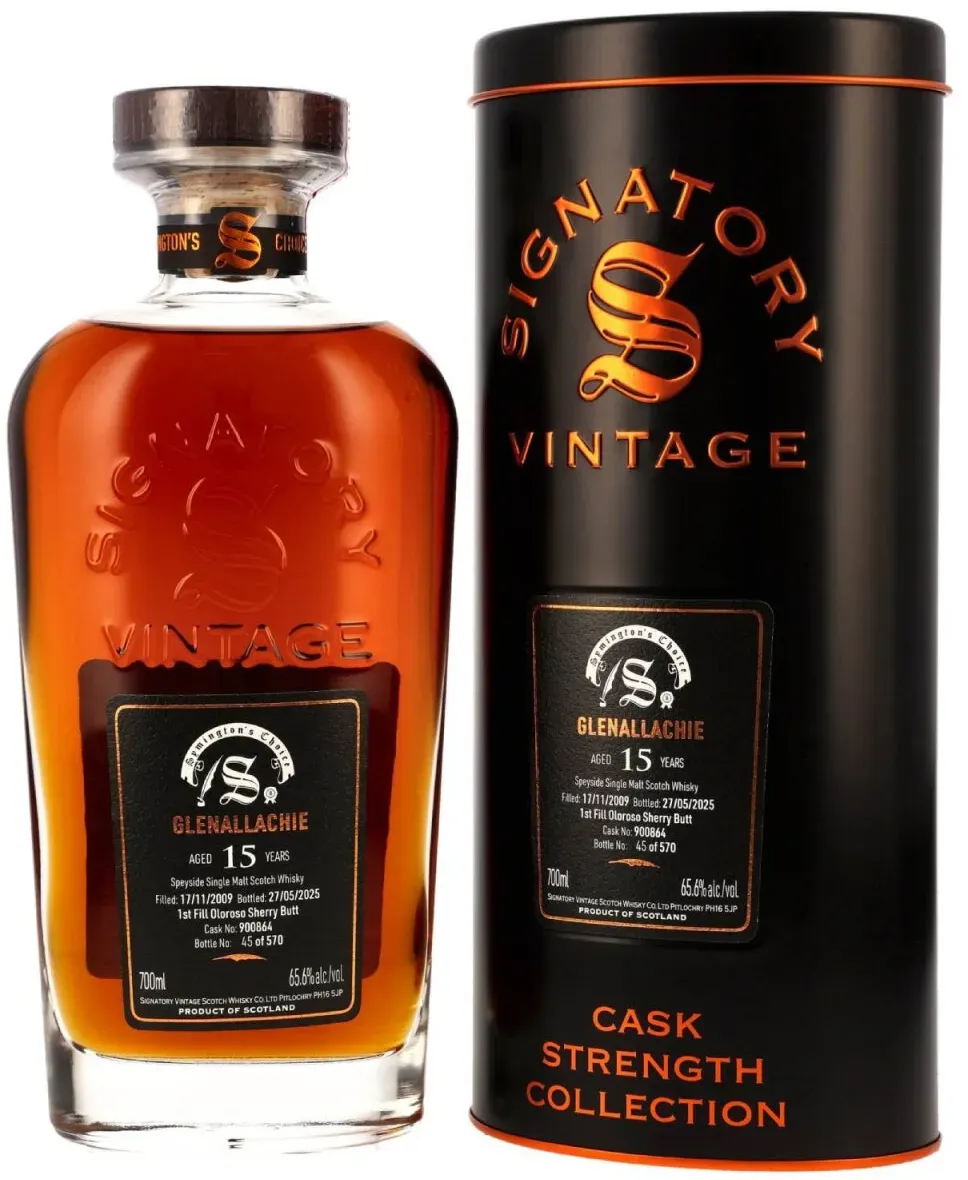 Signatory Vintage - EAN: 5021944129362 - Der GlenAllachie 15 Years Old 2009 von Signatory Vintage ist ein exklusiver und kraftvoller Single Cask Scotch Whisky, der im Rahmen der renommierten Symington's Choice Serie abgefüllt wurde. Dieser außergewöhnliche Single Malt stammt aus einem von zwei Schwesterfässern, die gemeinsam mit großer Expertise ausgewählt wurden: In enger Zusammenarbeit brachten Andrew Symington, Gründer von Signatory Vintage, und Billy Walker, Master Distiller und Inhaber von GlenAllachie, ihre jahrzehntelange Erfahrung ein, um einen Whisky zu schaffen, der höchste Ansprüche erfüllt. Destilliert im Jahr 2009 und abgefüllt nach 1 n Reifung im First Fill Oloroso Sherry Butt Nr. 900864, wurde dieser GlenAllachie in natürlicher Fassstärke mit 66,5 % Vol. abgefüllt ohne Kühlfiltrierung und ohne Farbstoff. Das Ergebnis ist ein intensiver, vielschichtiger Speyside-Malt, der sowohl in seiner Aromatik als auch in seiner Struktur Kenner und anspruchsvolle Genießer gleichermaßen begeistert. Die Abfüllung ist streng limitiert und wird in einer hochwertigen Tinbox geliefert, die ihren Sammlerwert unterstreicht. Ein Whisky von Experten für Experten, der die Handschrift zweier großer Namen der schottischen Whiskywelt trägt komplex, kraftvoll und absolut authentisch. Farbe: Dunkler Bernstein. Nase: üppige Sherrynoten mit Trockenfrüchten, Rosinen, kandierter Orangenschale, dunkler Schokolade, Leder und Eichenwürze. Geschmack: Vollmundig, ölig und intensiv mit Aromen von ... Diese Abfüllung mit Tawny Port Pipe Finish bietet eine interessante Geschmacksentwicklung durch die Nachreifung in Portweinfässern. ![]() ![]() GlenAllachie 15y - 2006/2021 Tawny eBay Port Pipe 0.7L 61,3% Vol.