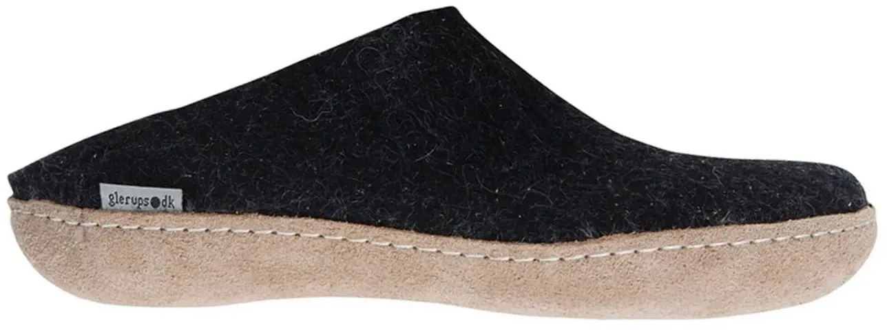 lieferbar-in 3-4 Werktagen bei dirglerups dk Modell B Filzpantoffel Ledersohle Pantoffel antibakteriell, atmungsaktiv, hautschonend, geruchsneutral schwarz 42 EU