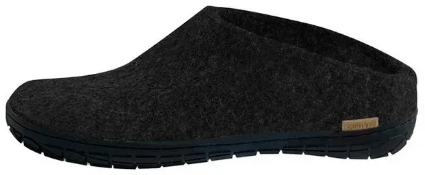 lieferbar-in 3-4 Werktagen bei dirglerups dk Modell A Filzschuh Kautschuksohle Hausschuh antibakteriell, atmungsaktiv, hautschonend, geruchsneutral schwarz 42 EU