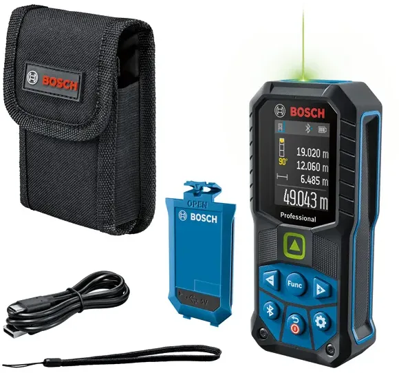 Auf Lager Versand durch AmazonBosch Professional Laser-Entfernungsmesser GLM 50-27 CG (grüner Laser, Reichweite: bis 50 m 3,7 V Lithium-Ionen-Akku, USB-Kabel, robust, IP65, Bluetooth-Datenübertragung, Schlaufe, Tasche)