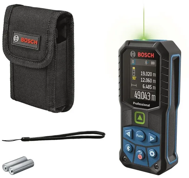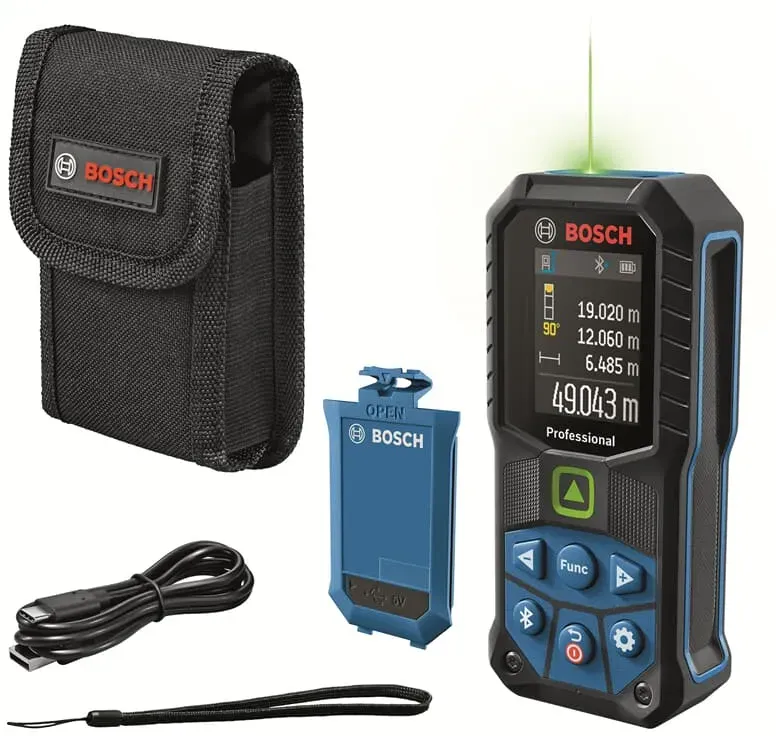 45 Händlerangebote bei billiger.de - Kategorie: Entfernungsmesser - Bosch - Grüne Lasertechnologie rt exzellente Sichtbarkeit zum Messen großer Distanzen bei hellen Innenraumbedingungen · Ideal für raue Bauarbeiten dank Sturzfestigkeit bis zu 1,5 Meter Höhe, IP 65-Zertifizierung, stoßabsorbierendes Gehäuse mit Gummiummantelung · Zügige Dokumentation und schneller Datentransfer dank Bluetooth®-Konnektivität und Bosch MeasureOn App. - GTIN:4059952518831 Ein gutes Angebot, das neben dem 50m Messbereich auch Bluetooth und ein Farbdisplay hervorhebt. ![]() ![]() Bosch Laser-Entfernungsmesser GLM 50-27 CG, 50m Messbereich, Bluetooth, Farbdisplay