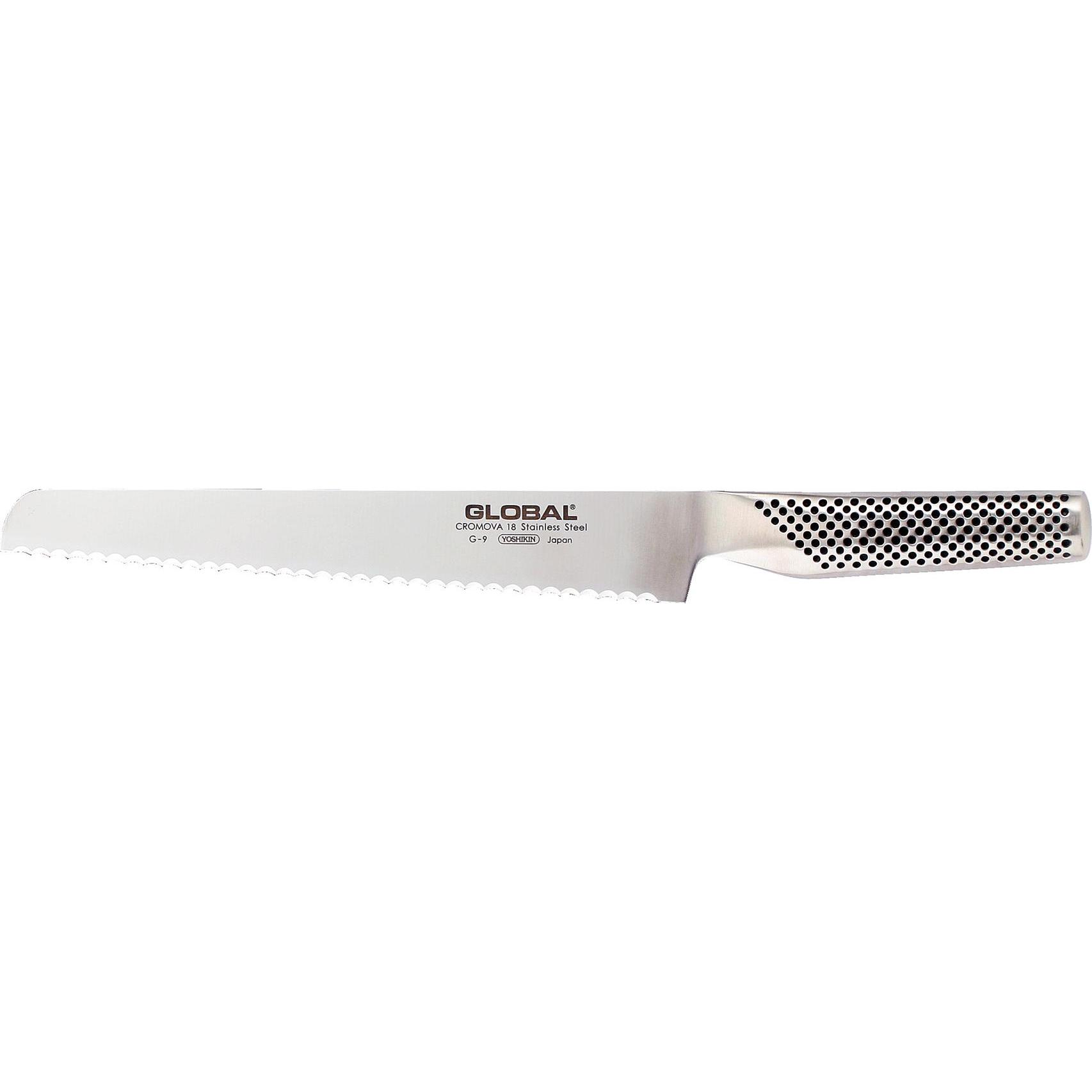 ? Was ist das Global G-09 Brotmesser?Das Global G-09 ist ein Brotmesser mit 22 cm Klingenlänge und einem speziellen Wellenschliff (gezackte Klinge), der besonders gut für knusprige Brotkrusten geeignet ist. Es wird oft auch als G-9R bezeichnet und ist Teil der klassischen Global G-Serie.