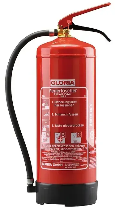 Kategorie: Feuerlöscher - Gloria - GTIN:4006325106225 - Brandklasse 34 A, 183 B, C DIN EN 3 mit Wandhalter Pulverlöscher Inhalt 6kg - 49,90 Euro bei Amazon Marketplace Automotive - gefunden von billiger.de ![]() ![]() Gloria Feuerlöscher PD6GA (Löschmittel: Pulver)