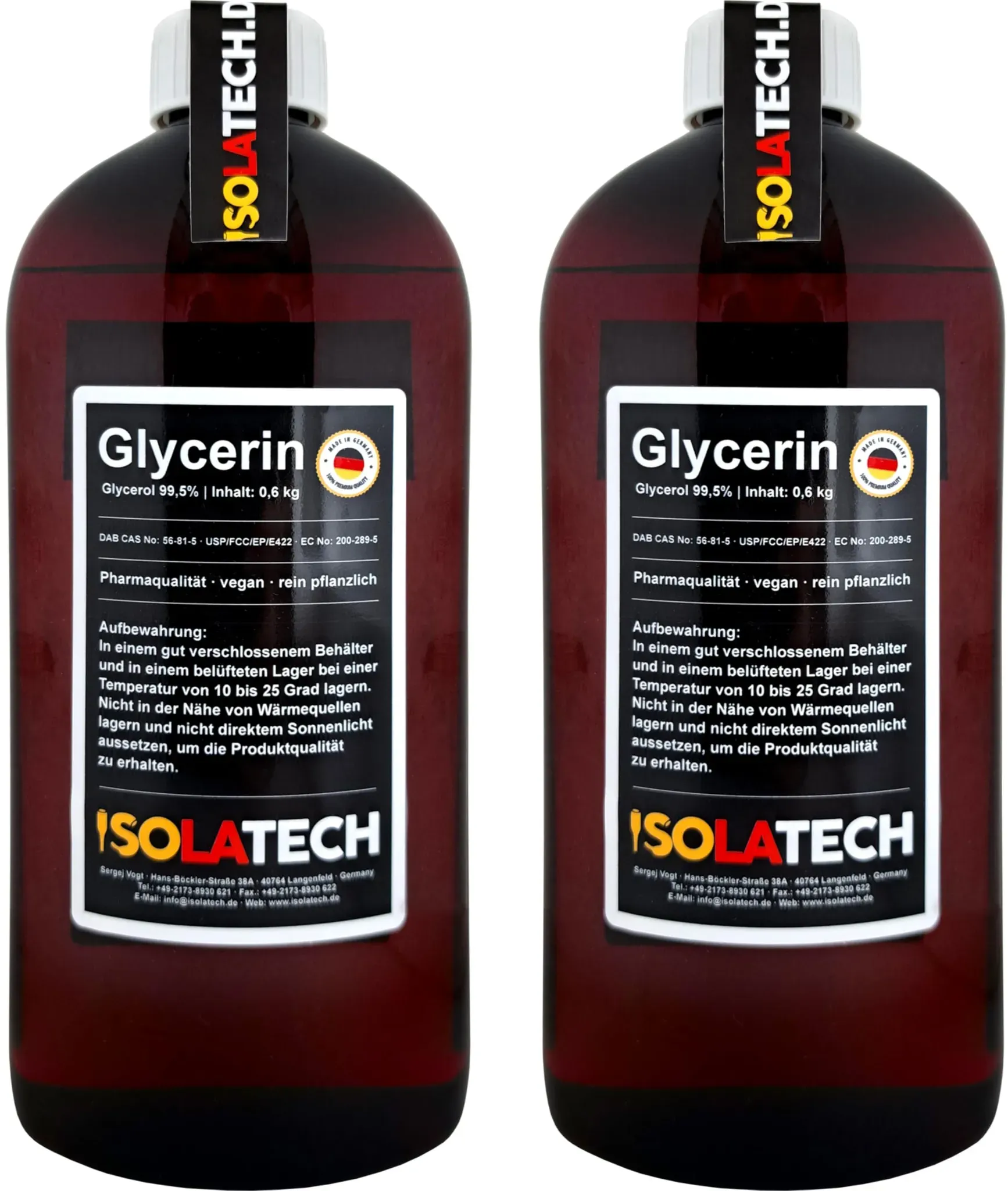 Zustand: Neu - Laborchemikalien - Furthchemie Furth Chemie - 223-0001 - EAN: 0676424960789 - Glyzerin 99,5 %, pflanzlich Bezeichnungen: Glycerin, Glycerol, 1,2,3,-Trihydroxypropan, 1,2,3,-Propantriol, CAS-Nr.: 56-81-5 Merkmale: Klare, farb- und geruchlose, viskose und hygroskopische Flüssigkeit Bio-Glycerin: das angebotene Glycerin ist ausschließlich pflanzlichen Ursprungs; Für den Rohstoff gibt es ansonsten noch zwei weitere Herstellungsverfahren: Aus tierischen Fetten, sowie basierend auf Erdöl (synthetisch) Verwendung: i.d.R. Feuchtigkeitsspender in Seifen und Kosmetika, Frostschutzmittel, Fleckenentferner - Verkäufer: Furth Chemie im amazon.de Marketplace Dieses pflanzliche Glycerin ist mit 8,80 Euro eine kostengünstige Option für kosmetische Anwendungen. ![]() ![]() Glycerin 99,5% pflanzlich GMO frei 1l für kosmetische Anwendungen E422