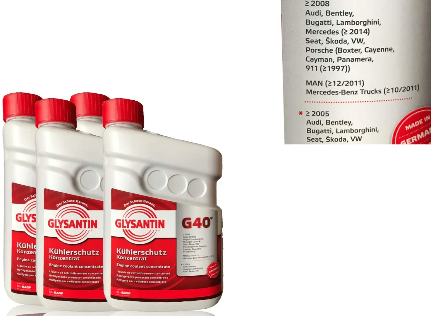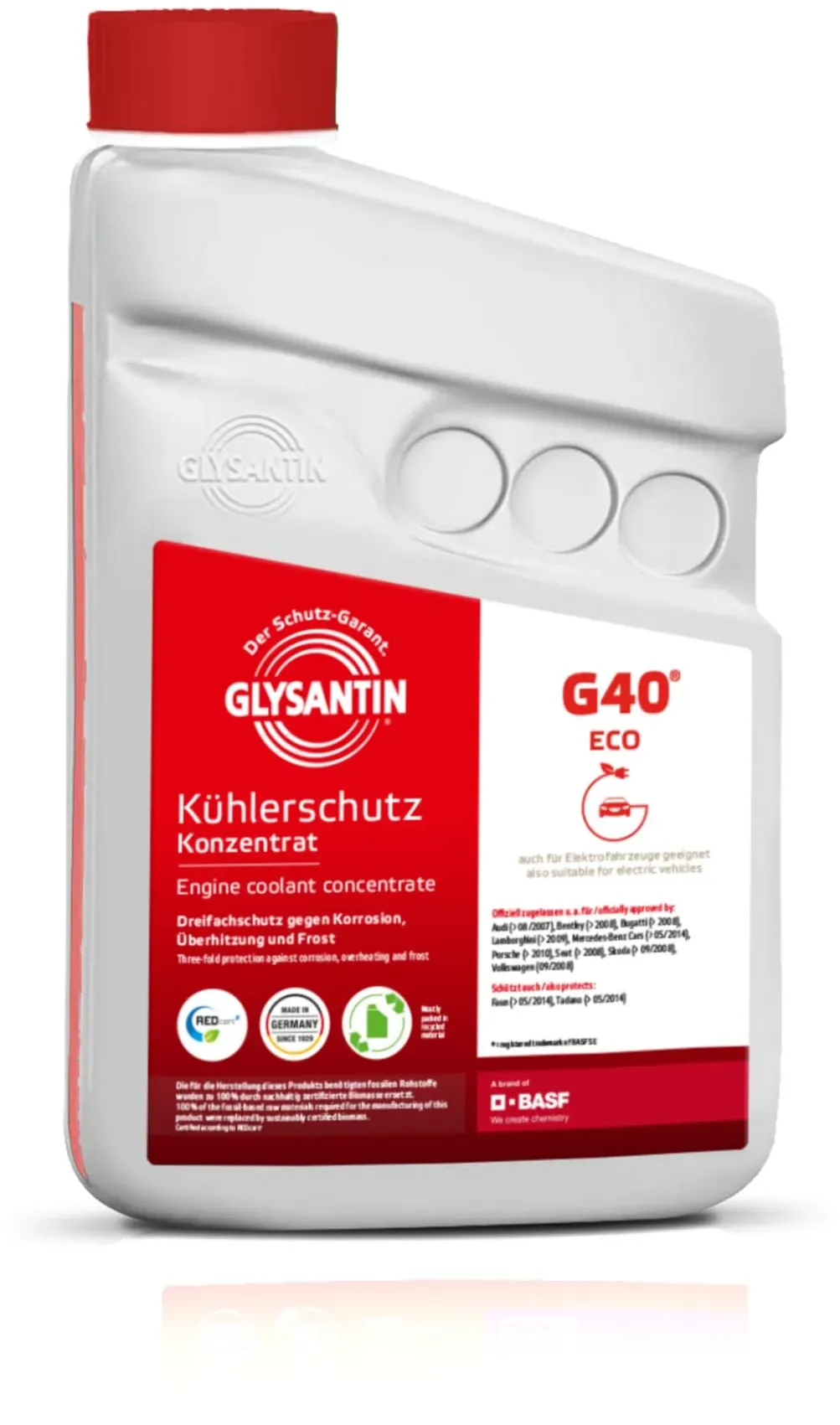 Für die Suche im Meta-Preisvergleich können Sie gezielt nach BASF Glysantin G40 oder Glysantin G40 ECO suchen, um die besten Angebote zu finden. Jetzt live Suche nach glysantin g40 starten! Empfohlene Glysantin g40 Angebote*Durch Käufe über Links zu Händlern kann diese Website eine Provision erhalten, u.a. durch das eBay Partner Network und das AmazonPartnerNetDieses Angebot ist besonders preiswert für ein Konzentrat und ermöglicht eine individuelle Mischung je nach Bedarf. ![]() ![]() GLYSANTIN G40 ECO BMB 100 Kühlerschutz Konzentrat Liter