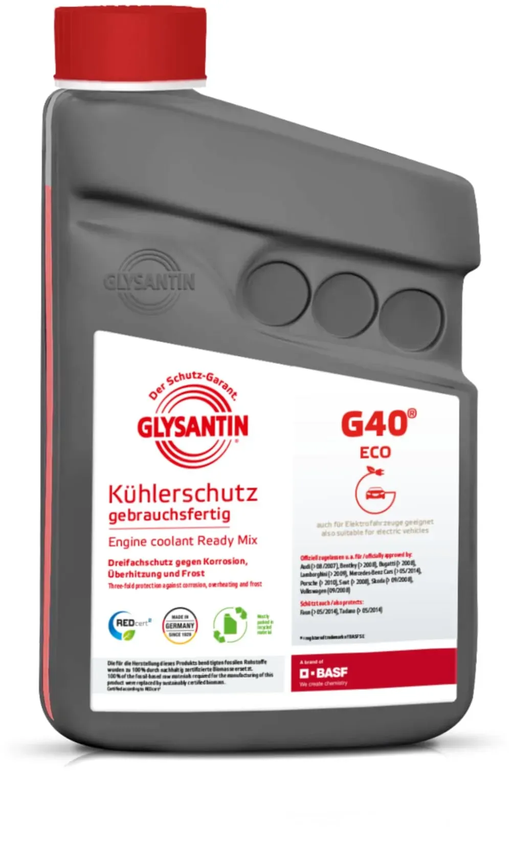 Kategorie: Autoreinigung & Pflege - Dabria - Brand: BASF BASF GLYSANTIN Frostschutz Kühlerfrostschutz Konzentrat G40 ROT 3,0 L Product Type: AUTO_ACCESSORY - 29,29 Euro bei Amazon Marketplace Automotive - gefunden von billiger.de Mit dem 5er-Pack erhalten Sie eine noch gröÃ?ere Menge zu einem attraktiven Staffelpreis, perfekt für Werkstätten oder GroÃ?verbraucher. ![]() Glysantin 5x 1 L G40® ECO BMB 100 Kühlerfrostschutz Kühlerschutz [Hersteller-Nr. 50788317]