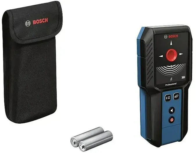 Kategorie: Ortungsgeräte - Bosch - GTIN:4053423255331 - Klar und einfach: das intuitive Ortungsgerät, das Unsichtbares sichtbar macht Gibt Sicherheit durch Ortung von Metall, stromführenden Leitungen und Holzbalken hinter der Wand Leicht in der Anwendung dank einfacher Betriebsartwahl und Markierungsloch Geeignet für die Anwendung auf rauen Baustellen... - 83,95 Euro bei alango.de - gefunden von billiger.de Ein weiteres sehr preiswertes Angebot, das das Gerät mit Tasche und Batterien liefert. ![]() ![]() Bosch Professional GMS 120-27 mit Tasche; 2 x 1,5 V LR6-Batterie (AA)