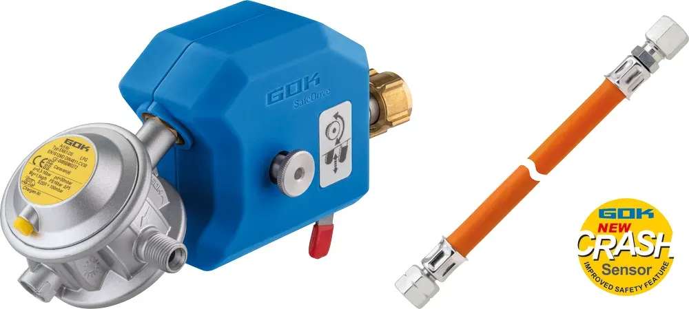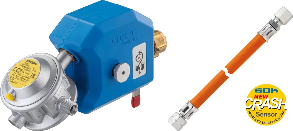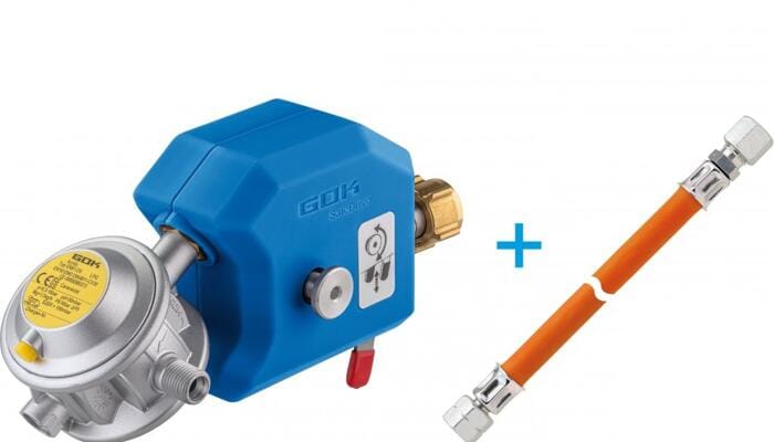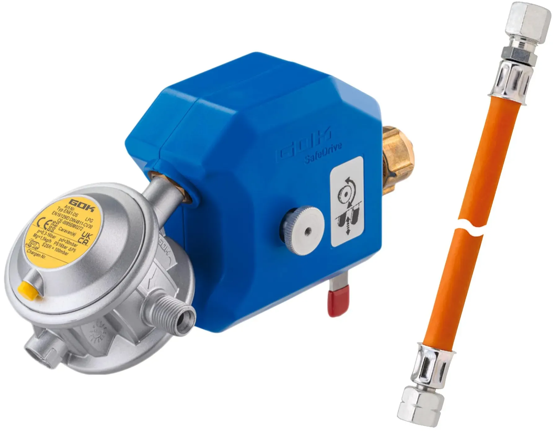 GOK - EAN: 4045659535523 - Sicherheits-Gasdruck-Regelanlage zum Betrieb von Einflaschenanlagen in Wohnmobilen und Wohnwagen während der Fahrt, zum direkten Anschluss an die Gasflasche Vorteile und Ausstattung: Gasversorgung... - bei campingwagner.de - aus Yadore Produktdaten Dieses Angebot ist mit 135 Euro ein sehr preiswertes Modell der GOK Caramatic SafeDrive 30mbar mit KLF-Anschluss. ![]() ![]() GOK Caramatic SafeDrive 30mbar 1,5 kg/h G.12 KLF x RVS10/8 SV