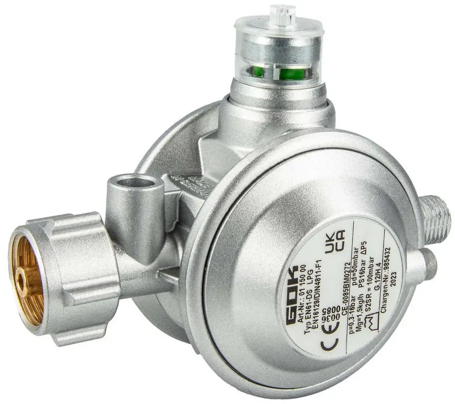 4 Händlerangebote bei billiger.de - Kategorie: Druckluftzubehör - GOK - GOK Gasregler EN61-DS 1,5 kg/h 50 mbarDer GOK Gasregler EN61-DS 1,5 kg/h 50 mbar ist ein Niederdruckregler, der für den Anschluss an Gasflaschen konzipiert ist. Mit einer maximalen Durchflussrate von 1,5 kg/h und einem Ausgangsdruck von 50 mbar ist dieser Regler ideal für eine Vielzahl von Gasgeräten und Anwendungen.Vorteile und Ausstattung: - überdruck-Sicherheitseinrichtung S2SR (üDS) zur Absicherung der Verbrauchsgeräte vor unzulässig hohem Druck - Sichtanzeige (grün/rot) mit optischem Signal (rot) bei Ausgangsdrücken über 80 mbar Konformität: - EU-Baumusterprüfbescheinigung DGR - EU-Baumusterprüfbescheinigung GGV - UKCA-Baumusterprüfbescheinigung GGVTechnische Daten: - Maximal zulässiger Druck: PS 16 barHinweis: - Druckregler mit dem Ausgangsdruck 29 bzw. 37 mbar sind nicht für den Einsatz in Deutschland geeignet!Lieferumfang:- 1x GOK Gasregler EN61-DS 1,5kg/h 50mBar Die Fa. GOK mit Sitz in Marktbreit ist der Weltmarktführer auf dem Gebiet für Flüssiggasanlagen, ölfeuerungsanlagen, Tankmanagement und Leitungssystemen. Gasregler aus dem Hause GOK stehen für höchste Qualität, dem höchst möglichen Maß an Sicherheit und Fortschritt. Funktion überdrucksicherheitseinrichtung S2SR (üDS)Video will open in a new window Paste link into a browser window:[isdntekvideo]Funktion überdrucksicherheitseinrichtung S2SR (üDS)Video will open in a new window Paste link into a browser window:[isdntekvideo] ... Dieser Niederdruckregler inklusive 40cm Gasschlauch ist mit 29,50 Euro eine praktische Komplettlösung für 30 mbar Anwendungen. ![]() ![]() GOK Niederdruckregler 0,8 kg/h 30 mbar EN61 mit 40cm Gasschlauch (Jahrgang 2024)
