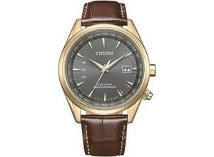 Uhren Mode Uhren Schmuck - - Citizen ist eine renommierte japanische Traditionsmarke, die für ihre hohe Qualität, fortschrittliche Technologie und Beständigkeit bekannt ist. Citizen ist besonders bekannt für seine Eco-Drive-Technologie, bei der die Uhren mit Solarenergie betrieben werden. Dies ermöglicht eine umweltfreundliche und wartungsfreie Energiequelle für die Uhren. Darüber hinaus bietet Citizen auch Quarzuhren an, die für ihre hohe Präzision und Zuverlässigkeit bekannt sind. Funkuhren von Citizen synchronisieren sich automatisch, um eine genaue Zeitmessung sicherzustellen. Für Liebhaber mechanischer Uhren bietet Citizen auch Automatikuhren an, die durch die natürlichen Bewegungen des Handgelenks aufgezogen werden. Insgesamt bietet Citizen eine breite Auswahl an Uhren, die den unterschiedlichen Bedürfnissen und Vorlieben von Damen und Herren gerecht werden., Produktdetails: Modellbezeichnung: CB0273-11H, Funktionen: Antrieb: Solar, Herstellerspezifische Antriebsbezeichnung: Eco-Drive, Empfangstechnologie: Funk, Funkempfangsregion: in Europa, USA, Japan und China, Anzeige: analog, Dunkelgangreserve: 720, Gangreserve: 4.320, Wasserdicht: bis 10 bar, Datumsfunktionen: Tag, Zusatzfunktionen: 12/24-Std.-Anzeige, Batterie-Entladungsanzeige, Farbe: Zifferblattfarbe: anthrazit, Gehäusefarbe: goldfarben, Armbandfarbe: braun, Material: Gehäusematerial: Edelstahl, Armbandmaterial: Leder, Optik/Stil: Gehäusedetails: IP-beschichtet, Gehäuse: Glas: Saphirglas, Armband: Verschluss ... Dieser CITIZEN Eco-Drive Solar-Chronograph ist funkgesteuert und verfügt über einen ewigen Kalender, ideal für Präzision und Komfort. ![]() ![]() CITIZEN Herren Eco-Drive Solar-Chronograph funkgesteuert mit Echtleder-Armband und ewigem Kalender - Radio Controlled - AT8263-10H