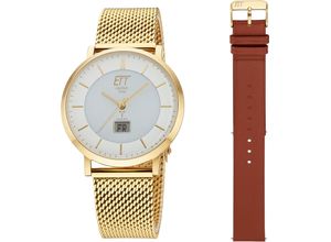 Zustand: Neu - Armbanduhren Armbanduhren für Herren - ETT Eco Tech Time - EGS-11623-11MS - EAN: 4260736033314 - Moderne, flache Herrenuhr (goldfarben) mit Solar Funk Antrieb Edelstahl-Meshband mit Lederband im Set, Bandwechsel ohne Werkzeug, helles Zifferblatt Mineralglas, bis zu 180 Tage Dunkelgangreserve, bis 5 Bar wasserdicht Aus Licht wird Zeit. Laden Sie den Akku Ihrer Uhr mit Sonnenlicht auf. Solar Dive Initiative - für jeden Uhr wird ein Baum im Regenwald gepflanzt - Verkäufer: Hersteller Eco Tech Time / Master Time im amazon.de Marketplace Der Funkchronograph ETT Professional World Timer aus Titan ist eine robuste und funktionale Wahl mit Stoppfunktion. ![]() Funkchronograph ETT 'Professional World Timer', gold (titanfarben, goldfarben), Armbanduhren, Herren, Armbanduhr, Herrenuhr, Titan, Solar, Datum, Stoppfunktion