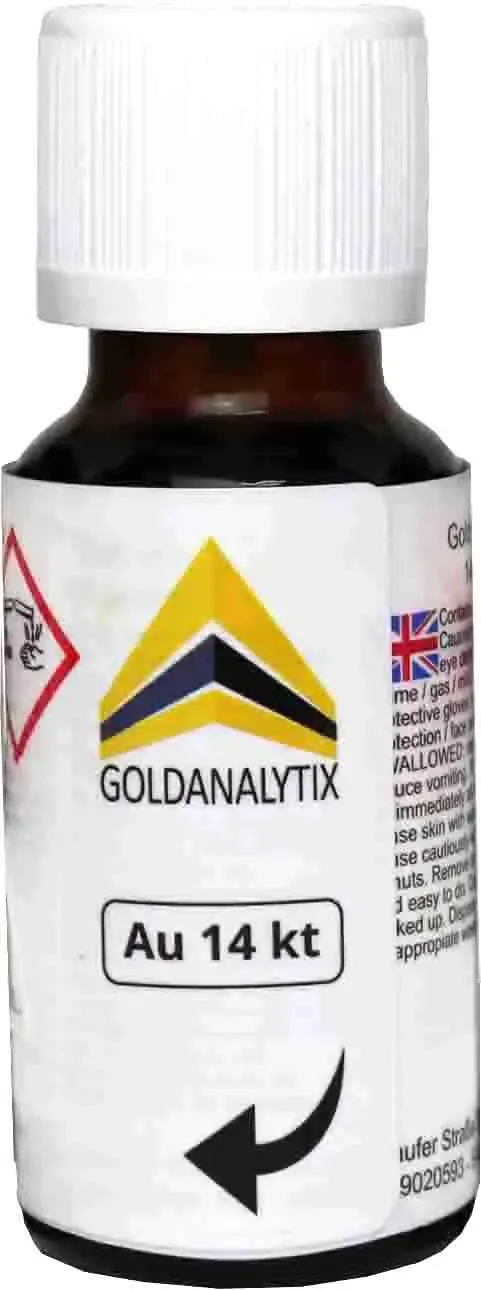 Verfügbarkeit: Auf Lager - Kategorie: Medizinischer Bedarf - GoldAnalytiX - GTIN:4260337043453 - Verfügbare Gold-Prüfsäuren: 8, 14, 18 und 21 Karat Probiersäuren für die zuverlässige Echtheitsprüfung von Gold Prüfung des Feingehalts mittels Strichprobe Einfache und schnelle Bestimmung der Karatzahl von Goldschmuck und Altgold Sowohl für gewerbliche als auch private Anwender geeignet - 10,90 Euro bei Amazon Marketplace Home Improvement - gefunden von billiger.de ![]() ![]() GOLDANALYTIX Prüfsäure Gold 14 Karat (585) - Probiersäure für den Gold-Test ? Zuverlässig und schnell Gold testen