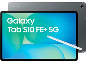 Tablet-PCs Lifestyle Technik Computer Notebooks Zubehör - - Ob du morgens mit einem Kaffee in der Hand deine E-Mails checkst, am Nachmittag eine Vorlesung nachbereitest oder abends tief in deine Lieblingsserie eintauchst - das Galaxy Tab S10 FE+ 5G ist dabei. Leicht, schlank und immer griffbereit begleitet es dich, wohin du willst. Dich zieht’s ans Wasser? Kein Problem! Dank IP68-Schutz musst du dir keine Sorgen machen, wenn mal ein paar Tropfen auf dem Tablet landen. Auf dem großen Display sind auch in der Mittagssonne deine Inhalte klar und gut lesbar, während du im Park an deinem neuesten Projekt feilst oder in einem spannenden Artikel versinkst. Und wenn du abends entspannt ein Video schaust oder den nächsten Level deines Lieblingsgames knackst, sollen bis zu 90 Hz Bildwiederholrate für flüssige Bewegungen sorgen. Der Sound dabei? Einfach mitreißend! Dank der kraftvollen Stereo-Lautsprecher mit Dolby Atmos kann es sich so anfühlen, als wärst du mittendrin. Lass deiner Kreativität freien Lauf. Egal, ob du Notizen machst, Ideen sammelst oder skizzierst -das Galaxy Tab S10 FE+ 5G bietet dir den Raum, den du brauchst. Und mit Circle to Search mit Google kann das Stöbern zu einem entspannten Erlebnis werden: Umkreise das, was dich interessiert, mit dem Finger oder S Pen, und schon kannst du Infos oder passende Shopping-Optionen bekommen. Das Galaxy Tab S10 FE+ 5G ist dein Begleiter für alles, was du liebst. Mach es dir einfach - und genieße jeden Moment!, Stromversorgung: ... ![]() SAMSUNG Tablet 'Galaxy Tab S10 FE+ 5G 256GB', grau, 256 GB,mit eSIM, Tablets_EBookReader