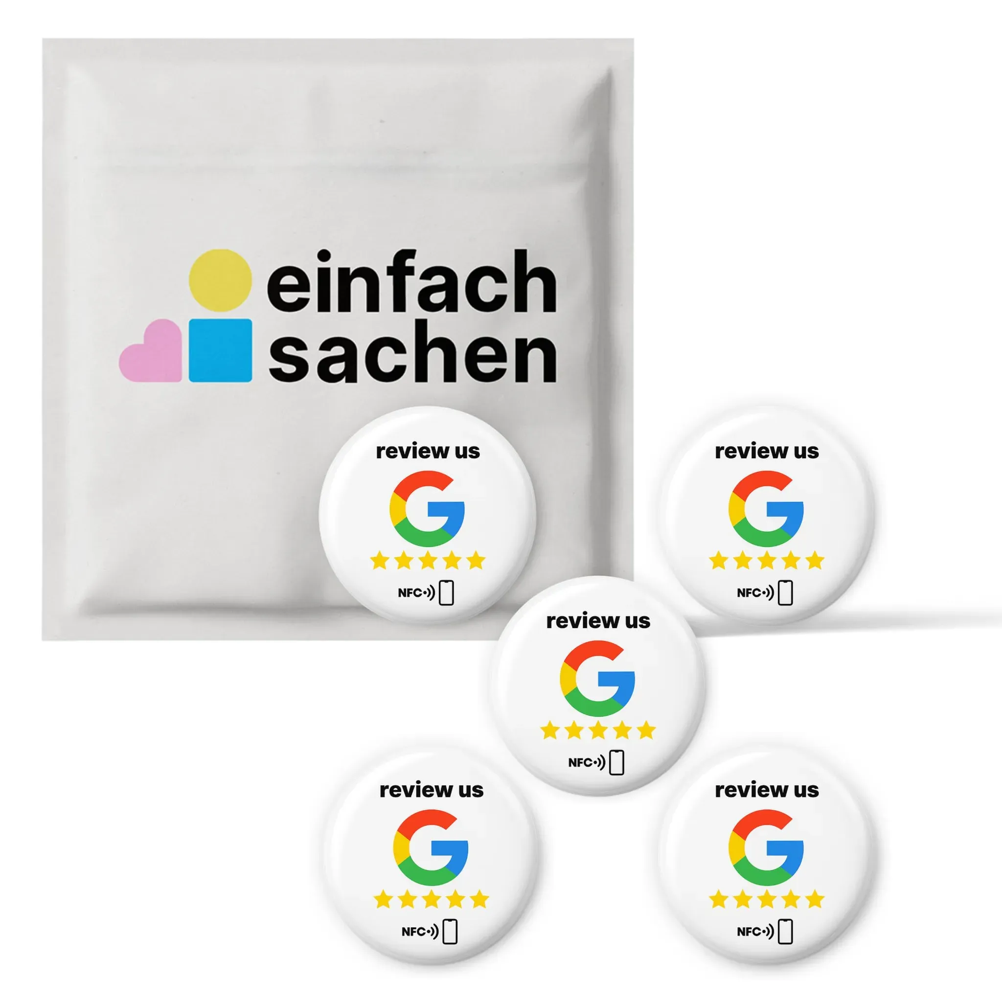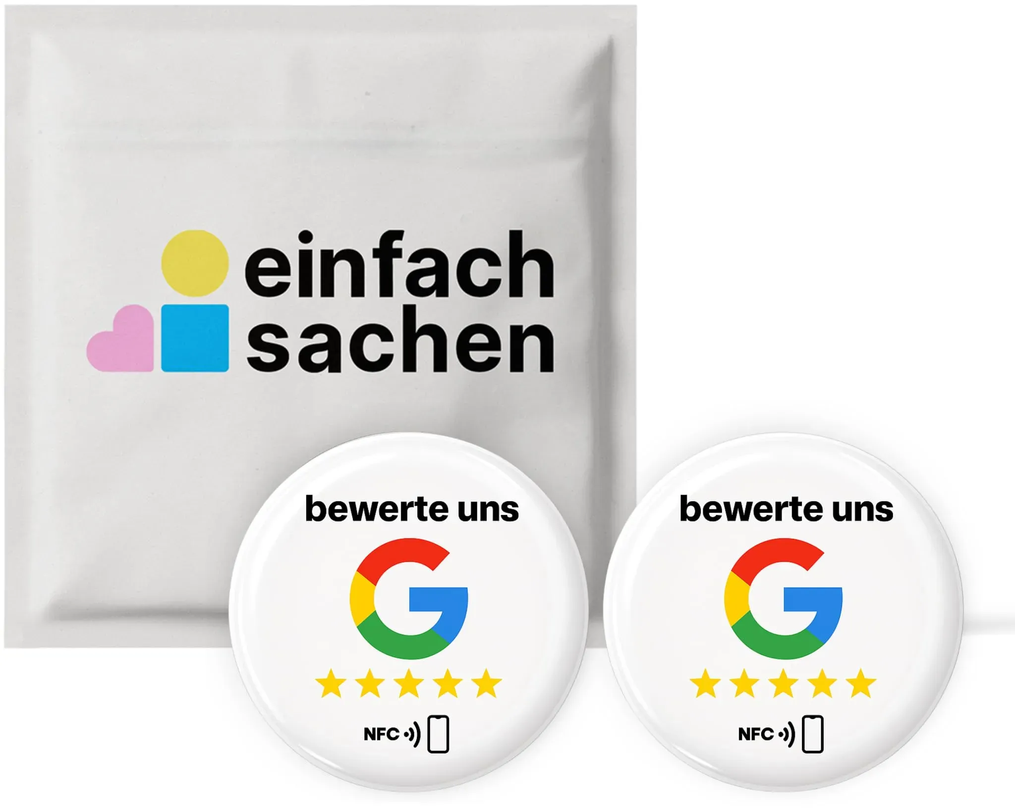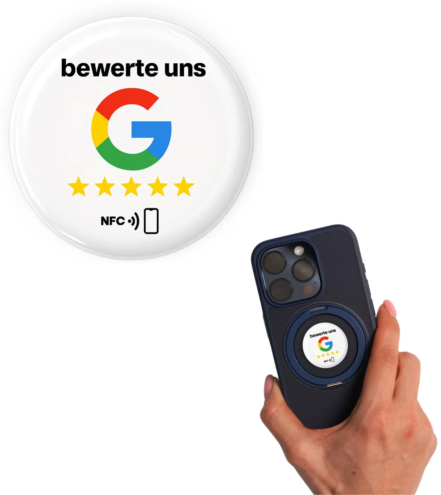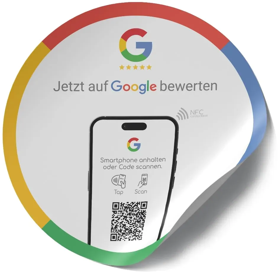 Kategorie: Basteln - einfachsachen - GTIN:4270004595680 - SAMMELN VON BEWERTUNGEN WAR NOCH NIE EINFACHER Mit nur einem Tap öffnet sich deine Google-Bewertungsseite sofort. Kunden können dich direkt bewerten ohne Tippen, ohne Suchen, schnell & kontaktlos EINFACH SELBST PROGRAMMIERBAR Der NFC Sticker ist selbst programmierbar, beliebig oft wiederbeschreibbar und flexibel einsetzbar. Keine Registrierung oder persönliche Angaben nötig IDEAL FüR HANDWERKER, CAF S & FRISEURE Perfekt, um Kunden direkt nach dem Besuch zur Bewertung einzuladen. Persönlich angesprochen steigt die Chance auf mehr 5-Sterne-Feedback erheblich KOMPAKT & FLEXIBEL Mit 3 cm passt der Sticker auf Smartphones, Theken, Aufsteller oder Counter. Dank 3M-Kleber haftet er sicher auf glatten, fettfreien Oberflächen SCHRITT-FüR-SCHRITT-ANLEITUNG Exklusive Bedienungsanleitung auf Deutsch & Englisch erklärt leicht verständlich, wie du den Sticker selbst programmierst. In wenigen Minuten startklar KOMPOSTIERBARE VERPACKUNG Geliefert in in kompakter, plastikfreier und kompostierbaren Verpackung samt Barcode-Sticker aus Bagasse. Anleitung gedruckt auf Recyclingpapier - 9,99 Euro bei Amazon Marketplace Home - gefunden von billiger.de Dieser Aufkleber mit QR und NFC ist eine kostengünstige Lösung, um Bewertungen in Google mit nur einem Klick zu erhöhen. ![]() ![]() MESSAGENES | Aufkleber Google mit QR und NFC | Schilder Bewertung NFC und QR Code | 1 Runde Einheit | Google Review | Bewertungen in 1 Klick | Erhöht Bewertungen in Google Ihrer Business
