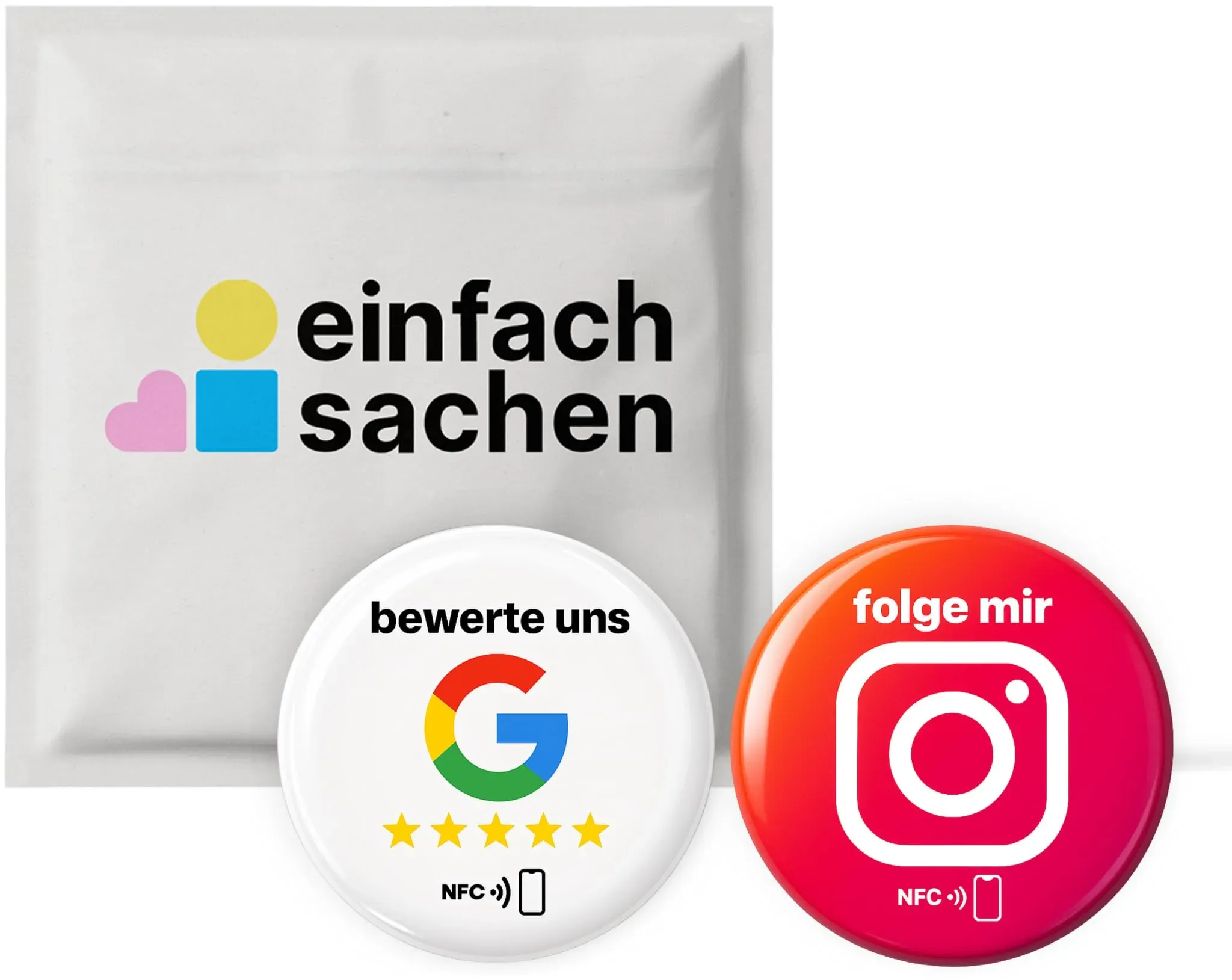 Kategorie: Sonstige Elektroinstallationsartikel - einfachsachen - GTIN:4270004595611 - MEHR GOOGLE REZENSIONEN: Kunden scannen den NFC-Sticker, gelangen sofort zur Google-Bewertungsseite und können bewerten unkompliziert und schnell ZUM SELBSTEINRICHTEN MIT OPEN SOURCE APP: Diese NFC Aufkleber für Bewertungen kannst du selbst programmieren ohne Registrierung oder persönliche Angaben - mit jeder kostenloser, frei verfügbaren NFC-App. Beliebig oft überschreiben einmal kaufen, dauerhaft nutzen! IDEAL FüR DIENSTLEISTER & BETRIEBE: Perfekt für Handwerker, Schlüsseldienste, Friseure, Trainer, Restaurants, Hotels, Einzelhändler & Kiosks, um mehr Google Maps Rezensionen & Bewertungen zu sammeln KLEIN & FLEXIBEL EINSETZBAR: Mit nur 3 cm haftet der Google Review NFC Tag dank 3M Sticker sicher auf Smartphones, Laptop-Covern, Aufstellern, Visitenkarten, Kassenautomaten & Schaufenster EINFACHE EINRICHTUNG Exklusive Schritt-für-Schritt-Anleitung auf Deutsch & Englisch erklärt klar und verständlich, wie du die NFC Sticker selbst programmierst am Beispiel der NFC Tools App. In wenigen Minuten einsatzbereit, unbegrenzt wiederbeschreibbar NACHHALTIGE VERPACKUNG Geliefert in einer plastikfreien, kompostierbaren Kraftpapiertüte samt Barcode-Sticker und Anleitung auf Recyclingpapier umweltfreundlich und kompakt - 17,99 Euro bei Amazon Marketplace Home - gefunden von billiger.de Dieses englische NFC Sticker Mix-Set mit 3D-Effekt ist vielseitig einsetzbar und ermöglicht sowohl Google Bewertungen als auch Instagram Follower. ![]() ![]() einfachsachen NFC Sticker Mix-Set englisch: 1x für Google Bewertungen ( Review us ) + 1x für Instagram ( Follow us ) 3D-Effekt, glänzend, selbst programmierbar, wiederverwendbar, 3 cm, Verbindung mit einem Scan