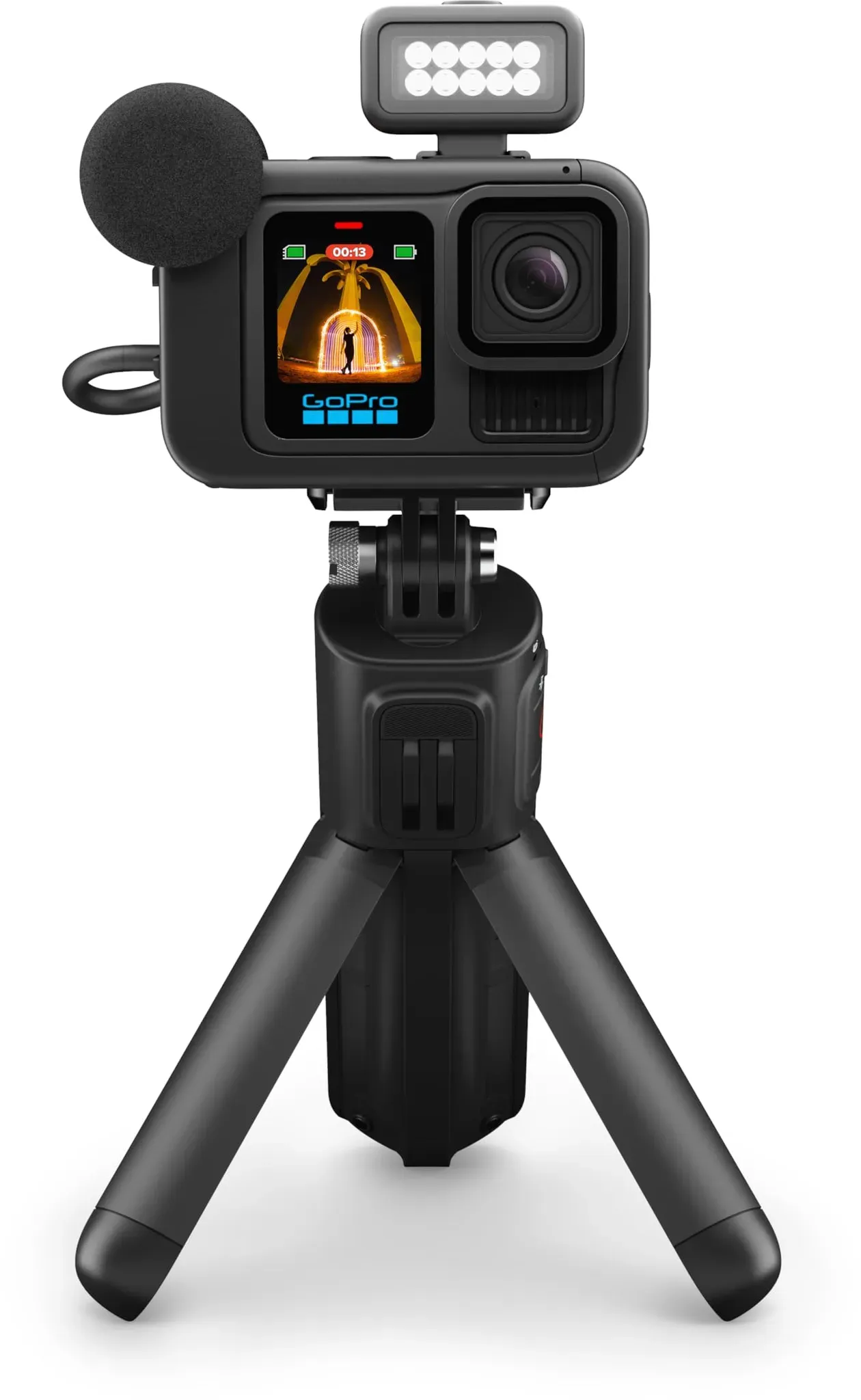 Verfügbarkeit: sofort verfügbar - Kategorie: Action Cams - GoPro - GTIN:0810116383818 - GoPro HERO13 Black Ultra Wide Edition - Actioncam + ultrastabilisiertes 177°-POV-Objektiv - atemberaubende 5,3K60-Videos und hochauflösende Fotos (27 MP) - HyperSmooth-Videostabilisierung - robust und wasserdicht bis zu 10 m - langlebiger Enduro-Akku (1900 mAh) - LCD-Display vorne und hinten - GPS - 409,00 Euro bei fotokoch.de - gefunden von billiger.de Ein umfassendes Creator Edition Bundle, das alles für anspruchsvolle Content-Ersteller bietet. ![]() ![]() GoPro HERO13 Black Creator Edition €“ enthält HERO13 Black, Volta (Batteriegriff, Stativ, Fernbedienung), Media Mod, Light Mod, Enduro-Akku, magnetische Verriegelungshalterung und Tragetasche