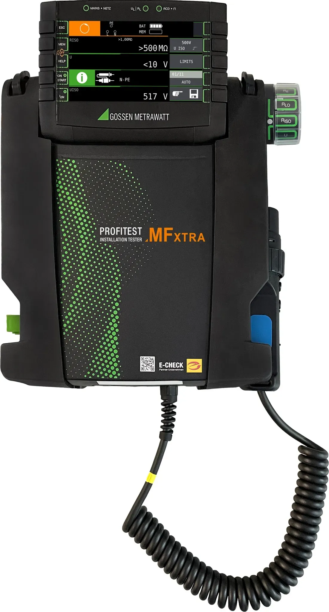 Messtechnik und Werkstattbedarf Messtechnik Test- und Prüfgeräte Isolationsmessgeräte Handwerkzeuge - EAN:4012932133738 - Mess- und Prüfgerät zur Prüfung der Wirksamkeit von Schutzmaßnahmen an ortsfesten elektrischen Installationen nach Fertigstellung, Reparatur, Erweiterung und anlässlich einer Wiederholungsprüfung.Die neuen Installationstester der Serie PROFITEST MF sind perfekt auf die Anforderungen einer Elektrofachkraft zugeschnitten - sie sind somit die maßgeschneiderte Lösung für die Umsetzung der elektrischen Prüfungen in Installationen und Anlagen - Tag für Tag.Die MF-Serie ist die konsequente Weiterentwicklung der etablierten PROFITEST-Serie mit ihrem einzigartigen Bedienkonzept. Der intuitive Drehschalter zur schnellen Auswahl von Mess- und Steuerungsfunktionen, das hochauflösenden und kontextsensitive Farbgrafikdisplay - in Verbindung mit den automatischen Prüfsequenzen - bieten dem Anwender einen praxisorientierten Bedienkomfort.Durch die vielseitigen Einsatzmöglichkeiten mit diversem Zubehör & Adapter sind Sie auch für zukünftige Herausforderungen bestens gerüstet. Neue Messfunktionen und Prüfsequenzen können durch ein einfaches Firmware-Update eingespielt werden - unsere Service für Sie, damit Sie auch in 1 n noch up to date sind!Der PROFITEST MF XTRA bietet alle Mess- und Prüffunktionen zur Prüfung der Wirksamkeit der Schutzmassnahmen an ortsfesten elektrischen Installationen - sowohl mit vordefinierter als auch optional mit programmierbaren Prüfsequenzen ... Dieses Starter-Set bietet einen guten Einstieg in die PROFiTEST MF XTRA Serie mit den wichtigsten Komponenten. ![]() ![]() Gossen Metrawatt PROFITEST MF XTRA Starter-Set
