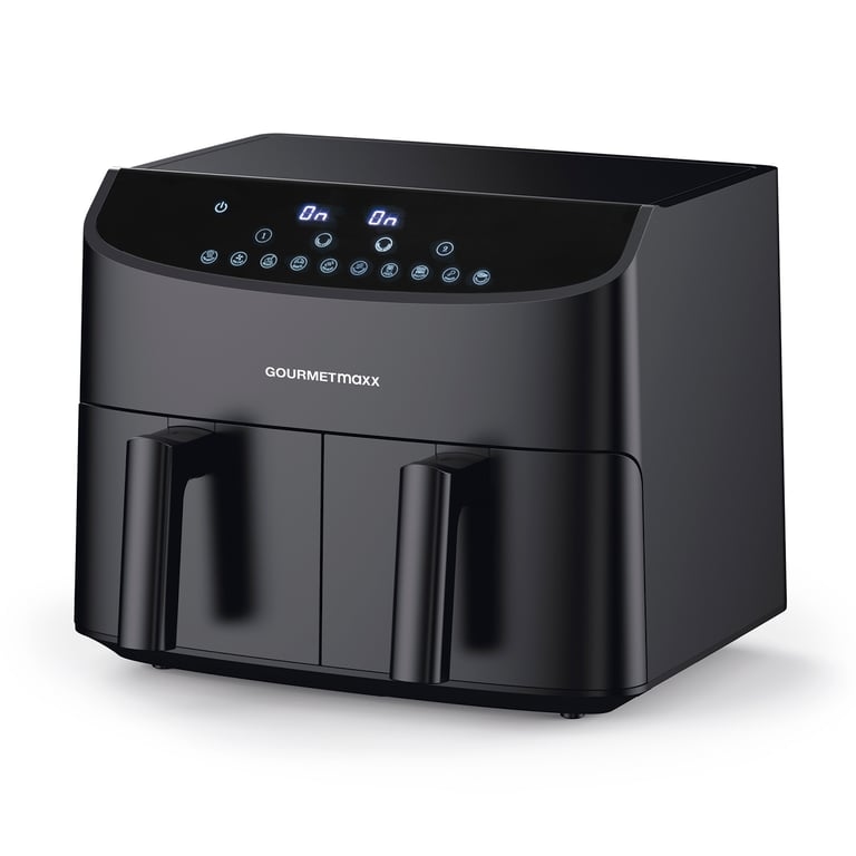 GOURMETmaxx - EAN: 4067522023470 - Pommes frites nahezu ohne Fett frittieren? Mit der Doppelkammer-Heißluftfritteuse von GOURMETmaxx ist das kein Problem! Die clevere Kombination aus Heißluftofen, Grill und Fritteuse gart Ihre Lieblingsspeisen nicht nur besonders schnell und... - bei metro.de - aus Yadore Produktdaten ![]() kaufland.d e DS Produkte GOURMETmaxx Heißluft-Fritteuse Doppelkorb - 2x 3,5 l - schwarz 12459