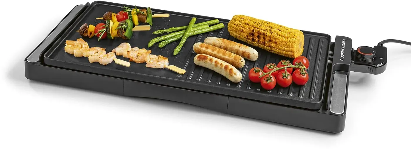 3 Händlerangebote bei billiger.de - Kategorie: Elektrogrills - GOURMETmaxx - LEISTUNGSSTARKER KONTAKTGRILL MIT 2200 WATT - Bietet schnelles und effizientes Grillen für verschiedene Speisen wie Raclette, Fleisch, Gemüse und Sandwiches. Perfekt für gemütliche Grillabende oder den schnellen Snack zwischendurch. EINFACHE REINIGUNG DURCH ABNEHMBARE PLATTEN - Die Grillplatten sind antihaftbeschichtet und lassen sich mühelos abnehmen, was eine schnelle und unkomplizierte Reinigung ermöglicht. Kein Anhaften von Speiseresten! KOMPAKT UND PLATZSPAREND - Der GOURMETmaxx Kontaktgrill lässt sich nach Gebrauch leicht verstauen, ohne viel Platz in der Küche einzunehmen, ideal für kleine Haushalte oder Küchen mit begrenztem Stauraum. VIELSEITIGE EINSATZMöGLICHKEITEN - Ob Grillfleisch, Gemüse, Sandwiches oder Raclette dieser Optigrill bietet vielseitige Anwendungsmöglichkeiten und sorgt bei jeder Mahlzeit für perfekte Ergebnisse. GESUNDES UND FETTARMES GRILLEN - Dank der hochwertigen Antihaftbeschichtung wird weniger Fett benötigt, was gesundes und fettarmes Zubereiten ermöglicht, ohne auf vollen Geschmack zu verzichten. - GTIN:4067522072898 Der GOURMETmaxx Dönergrill für 39.99 Euro ermöglicht die Zubereitung von Döner und Gyros zu Hause. ![]() ![]() GOURMETmaxx Dönergrill 05914 schwarz