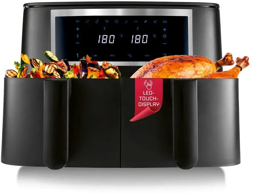 Die Marke wird als preisgünstige Option zu Premium-Marken wie Ninja, Cosori oder Philips gelobt, mit Fokus auf Vielseitigkeit (Frittieren, Backen, Grillen).[4][7] Preisbereich und EmpfehlungenSuchen Sie im Preisbereich 40-150 € - Einstieg ab 30-70 € (kleine Modelle), Mittelklasse 70-100 € (5-9 Liter), Top-Modelle mit Doppelkammer 100-150 € (UVP bis 260 €, oft 40-60 % reduziert).[1][2][6] Vergleichen Sie Angebote, da Rabatte häufig sind (z. B. 64,99 € statt 99,99 €).[2] Kauftipps: