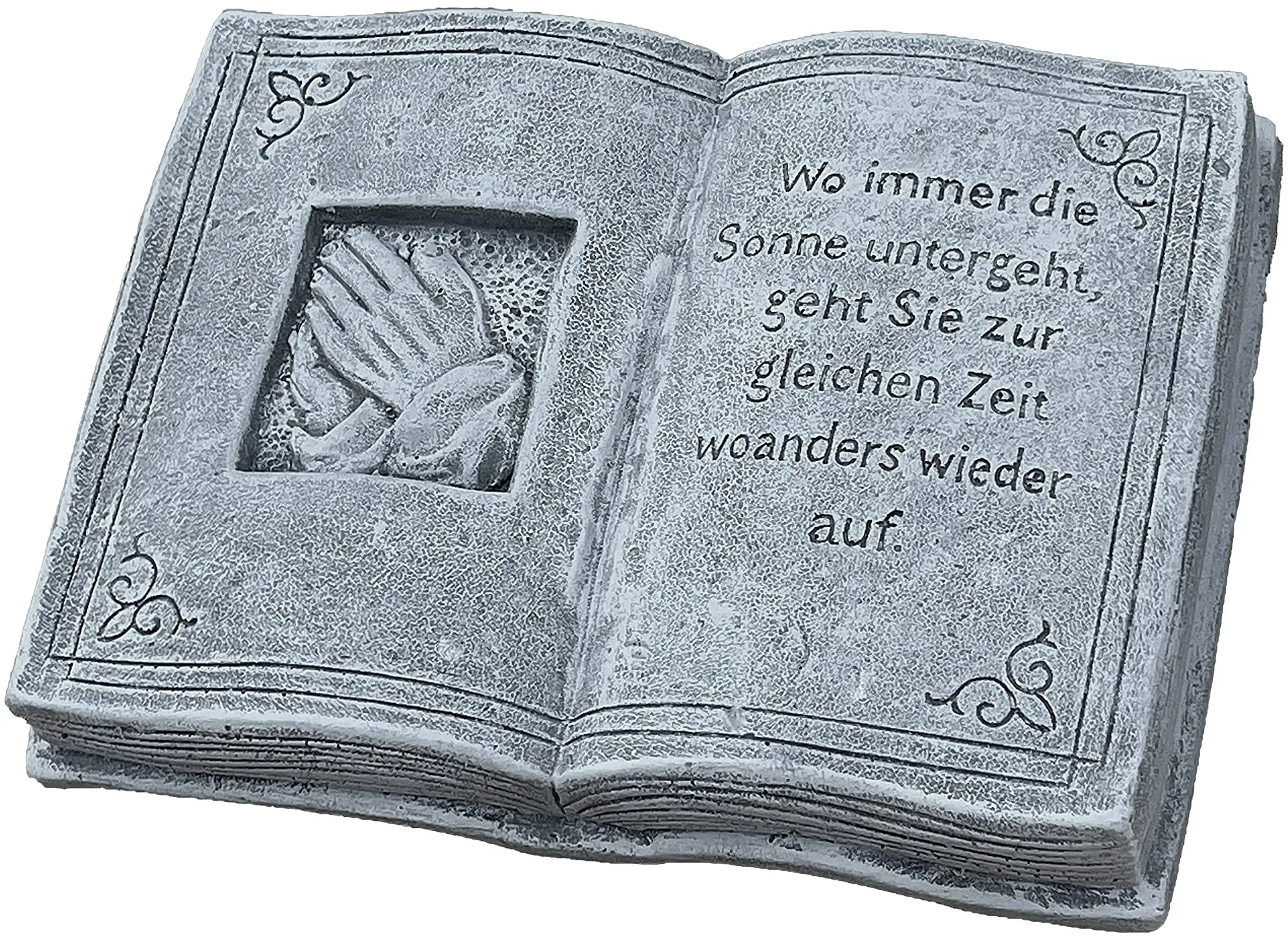 Religious & Ceremonial Sonstige - EAN:4000000630777 - Ob als Grabschmuck oder im Garten, Schutzengel brauchen wir überall. Vom Tageslicht gespeist erhellt er mit leuchtenden Blüten jeden Abend die Dunkelheit. Bedienungsanleitung: Zum Download - gefunden von Kelkoo Dieses Steinguss-Buch mit Trauerinschrift ist frost- und wetterfest und bietet eine beständige Gedenkmöglichkeit. ![]() ![]() stoneandstyle Grabschmuck Steinguss Buch mit Trauerinschrift Frost- und wetterfest