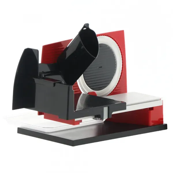 Graef - EAN: 4001627012045 - . Mit vielseitigem Wellenschliffmesser aus hochwertigen und rostfreien Edelstahl mit einem Durchmesser von 17 cm . Durchzugsstarker, wartungsfreier und leiser 45 - 170 Watt Eco-Motor für beste Schneidergebnisse . Schnittbreite kann bis 20mm stufenlos eingestellt werden . Mit Kombi-Aufsatz - Restehalter mit MiniSlice Aufsatz ermöglicht fingersicheres Feinschneiden & hauchdünne Verarbeitung kleinster Lebensmittel . Freitragende Konstruktion in Vollmetallausführung - Scheiben können direkt auf das mitgelieferte Tablett oder die Bodenplatte geschnitten werden . Moment- & Dauerschalter - Messer rotiert dauerhaft für größere Mengen oder nur pro einzelnen Schnitt . Kindersicherung durch Einschaltsicherung - Einschaltschutz-Riegel wird mit dem Finger nach hinten gedrückt . Safety-Verschluss für schnellen und sicheren Messerwechsel . Schneidet mühelos durch harte Krusten sämtlicher Brotsorten, sowie härteren Käse, viele Gemüsesorten sowie Aufschnitt und Fleisch . Lieferung inkl. MiniSlice Aufsatz, Restehalter, Kunststofftablett . Maße (BxHxT) 34,5 x 25,5 x 23,7 cm, Gewicht: 4 kg . Made in Germany Merkmale: Ausführung: elektrisch Material Gehäuse: Metall max. Schnittbreite: 20 mm Farbe: weiß - bei bueromarkt-ag.de - aus Yadore Produktdaten Für Liebhaber von Farbakzenten ist dieser rote Allesschneider eine gute Wahl zu einem fairen Preis. ![]() ![]() Graef SKS 110 rot - Allesschneider Klingendurchmesser 170 mm