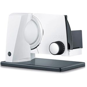 Verfügbarkeit: 5-7 Werktage - Kategorie: Allesschneider - Graef - GTIN:4001627012045 - CE-Kennzeichnung CE Hausgebrauch, Klingenmaterial Edelstahl, Klingendurchmesser 170mm, Werkstoff der Einstellplatte emaillierter Stahl, Material Basis ABS, Antrieb elektrisch 230V, Herstellungsland Deutschland, Material Klingenabdeckung ABS, mit Freifläche fürs Schneidebrett, Empfohlen für Weiche Aufschnittware, Empfohlen für Kastenbrot, Empfohlen für Halbgereifte Käsesorten, Empfohlen für Gemüse, Motortyp elektrisch, einphasig, Nennleistung (W) 45W, Antriebswellentyp Zahnradgetriebe, Schlittenswerkstoff Kunststoff, abnehmbarer Klingenschutz durch Knopf nein, Schleifaufsatz nicht vorhanden - 125,17 Euro bei agrieuro.de - gefunden von billiger.de Dieses weiße Modell ist eine preiswerte Option mit 170W Leistung und variabler Schnittbreite. ![]() ![]() Graef Allesschneider Sliced Kitchen SKS110, 170W, aus Metall, weiß, Schnittbreite 0 - 20mm