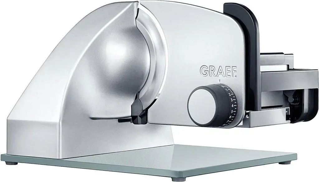 Zustand: Neu - Allesschneider Elektrische Allesschneider - GRAEF. - SKS 501 - EAN: 4001627023270 - Leichtgängige zentrale Bedienung mit integrierter Schnittstärkeneinstellung sowie Moment- und Dauerschalter Vollmetallausführung mit eloxiertem Anschlag Erhöhte Bauweise ermöglicht direktes Scheiden in Schüsseln, Auflaufformen und Aufbewahrungsboxen Schnittstärkeneinstellung 0 - 30 mm Ermöglicht auch das Aufschneiden von Brötchen Leistungsstarker, flüsterleiser Motor - bei Amazon.de ![]() ![]() Graef Master M 20 Allesschneider - Silber