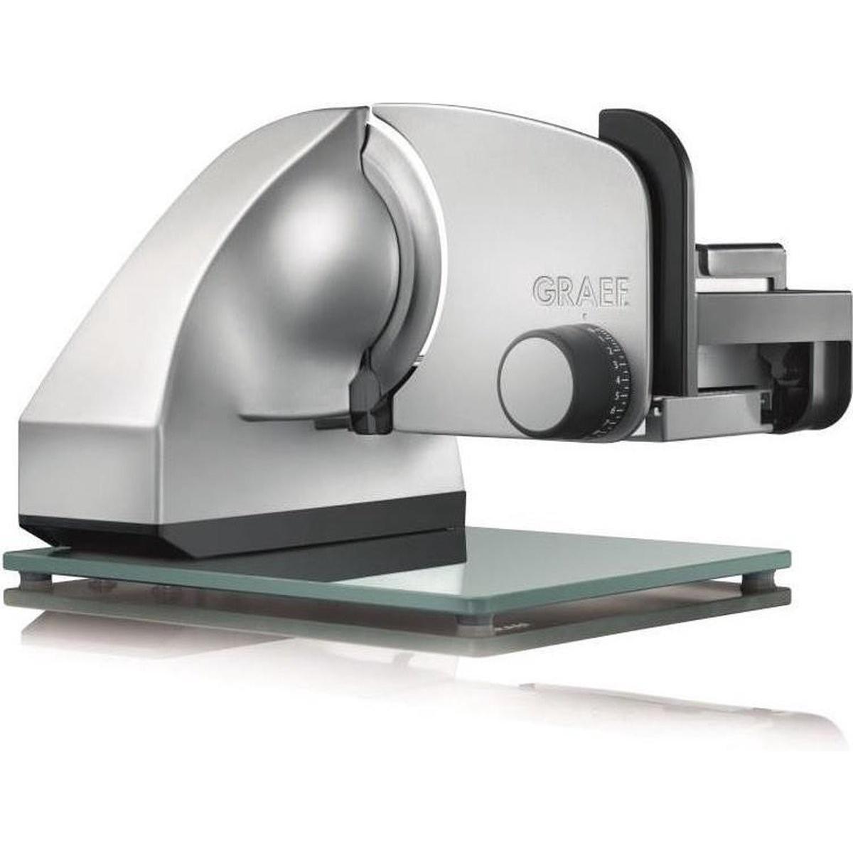 Auf Lager Versand durch AmazonGRAEF Master M90 - Elektrischer Allesschneider, Made in Germany, Kippbar 30°, Vollstahlmesser Ø 170 mm für feinste Schnitte, Schnittstärke 0-20 mm, 170 W, Vollmetall, Schneidemaschine, Silber