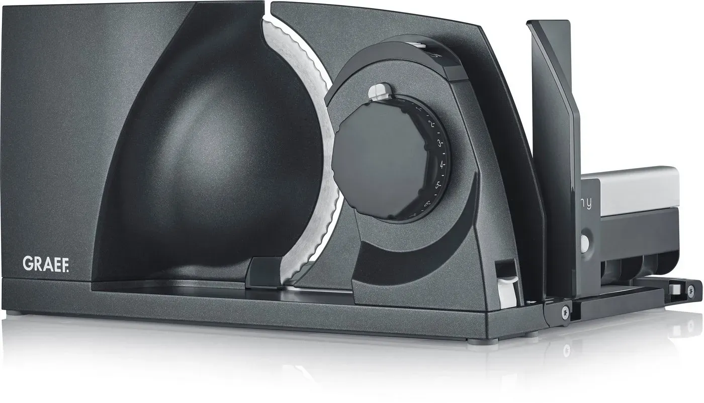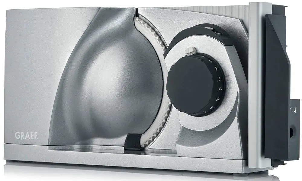 21 Händlerangebote bei billiger.de - Kategorie: Allesschneider - Graef - Made in Germany - Der klappbare GRAEF Allesschneider wird in unserer Manufaktur in Arnsberg gefertigt. Die ultrakompakte Schneidemaschine aus Vollmetall ist gemacht für Generationen und überzeugt durch präzise Verarbeitung, durchdachtes Design und hochwertige Materialien. Passt in jedes Leben - Mit nur 23,4 x 34,5 cm Grundfläche ist der klappbare Allesschneider MYtiny ein echtes Platzwunder. Sogar das Kabel kann auf Wunschlänge arretiert oder im herausschwenkbaren Kabelfach verstaut werden. Perfekt für Studentenküchen, Tiny Houses, Camper & Co. Präzise Schnitte - Das Edelstahl-Wellenschliffmesser (Ø 170 mm) und die stufenlos einstellbare Schnittstärke (0€“15 mm) der Schneidemaschine ermöglichen exakte Ergebnisse €“ von hauchdünn bis dick. Ideal für Brot, Käse, Aufschnitt, Gemüse und vieles mehr. Besonders mobil, besonders sicher - Die zentrale Bedieneinheit und die Einschalt- und Klappsicherung gewährleisten eine sichere und einfache Handhabung sowie einen mühelosen Transport. Der Safety-Verschluss am Messer ermöglicht eine leichte Entnahme sowie Reinigung des Messers. Effizienter Energiesparmotor - Der Energiesparmotor mit 170 Watt Spitzenschneidleistung ermöglicht ein effizientes, kraftvolles Schneiden selbst durch harte Krusten €“ und das bei minimalem Energieverbrauch. - GTIN:4001627038816 Dieses Angebot ist das günstigste für den Graef MYtiny in Eisenglimmergrau und somit eine gute Wahl für Sparfüchse. ![]() ![]() Graef MYtiny (MT1006EU)
