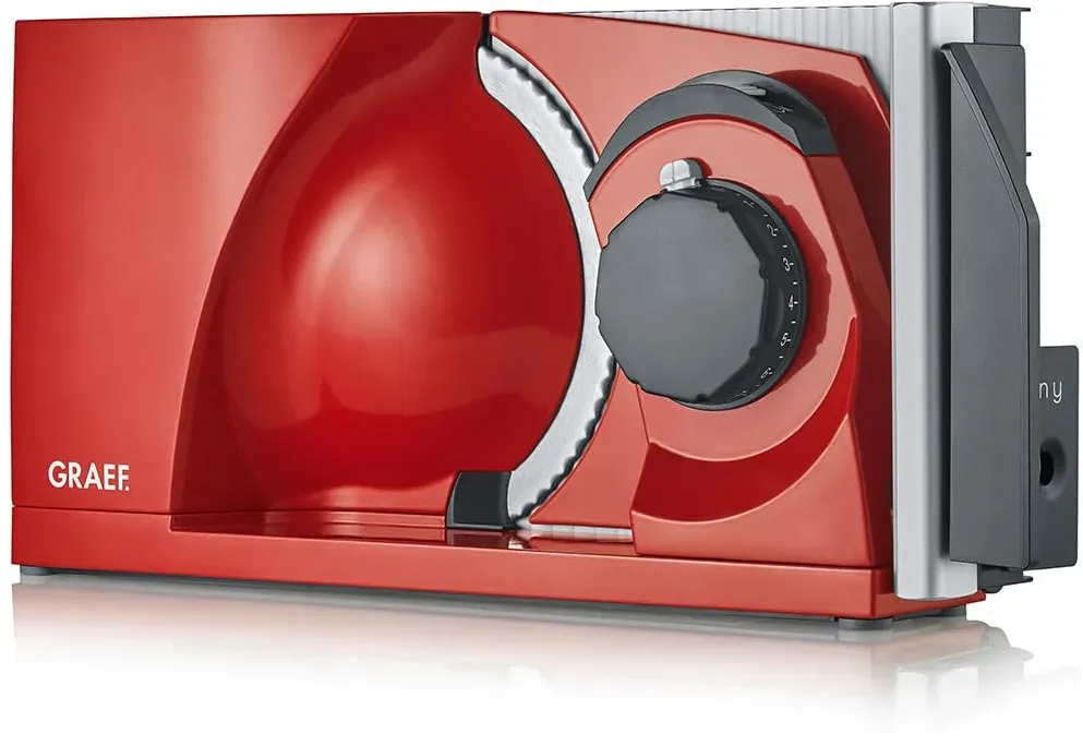 Graef - EAN: 4001627038816 - Graef MYtiny (MT1006EU) - bei galaxus.de - aus Yadore Produktdaten Dieses rote Modell ist eine attraktive Option für alle, die einen Farbtupfer in ihrer Küche wünschen. ![]() ![]() GRAEF MYtiny MT1003 - Klappbarer Allesschneider, Made in Germany, Vollmetall, Wellenschliffmesser Ø170 mm, Schnittstärke 0-15 mm, Energiesparmotor 170 W, Brotschneidemaschine klappbar, Kompakt Rot