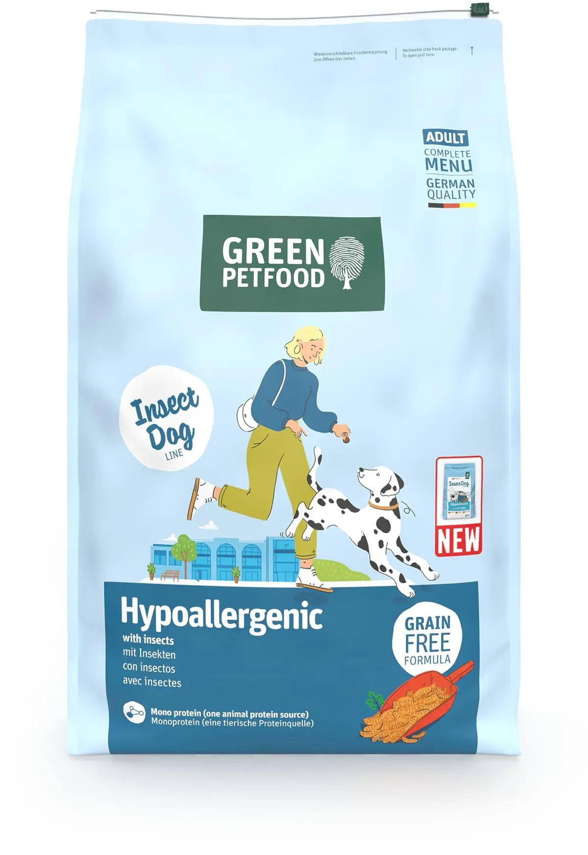 Auf Lager Versand durch AmazonGreen Petfood InsectDog Hypoallergen (1 x 10 kg) | Adult | Premium Trockenfutter für ausgewachsene allergische Hunde | getreidefrei mit Insektenprotein | nachhaltiges Hundefutter | (1er Pack NEU)
