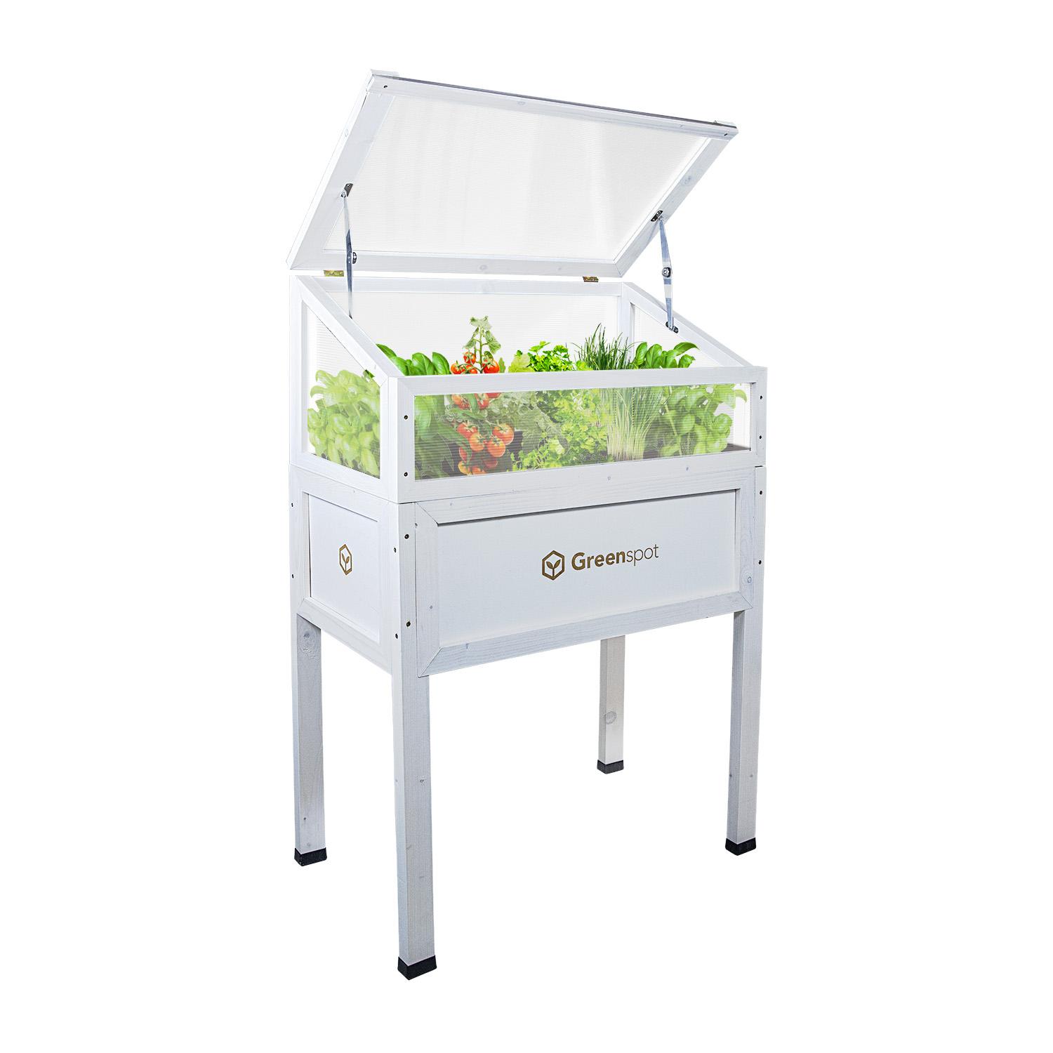 Zustand: Neu - Gartengewächshäuser - Greenspot - - EAN: 5908450888009 - Platzsparendes Hochbeet für Balkon & Terrasse: Das kompakte Hochbeet mit Frühbeetaufsatz passt auf kleine Balkone & Terrassen. Geeignet für Gemüse, Kräuter, Blumen. Geschützt mit einer Harzimprägnierung auf Wasserbasis, die für den Kontakt mit Nutzpflanzen bestimmt ist. Robuste Konstruktion für langanhaltende Freude: Der Frühbeetkasten mit Deckel besteht aus imprägniertem Fichtenholz & wasserfester Sperrholzplatte. So bleibt Ihr Kräuterbeet wetterfest, stabil & langlebig. Optimales Pflanzenwachstum durch schützende Abdeckung: Die transparente Polycarbonat-Haube des Hochbeets schützt vor Kälte und Wetter. Sie schafft schützende Bedingungen für Gemüse, Blumen und Kräuter zu jeder Jahreszeit. Rückenschonendes Gärtnern ohne Bücken: Dank der erhöhten Bauweise des Hochbeets können Sie bequem arbeiten. Die angenehme Höhe entlastet den Rücken & sorgt für komfortables Gärtnern. Individuelle Farbwahl für Ihre Wohlfühloase: Das stilvolle Hochbeet mit Frühbeetaufsatz gibt es in drei Farben: Palisanderbraun, Palisanderbraun Dunkel oder Weiß. Es fügt sich harmonisch in jedes Gartenambiente ein. - Verkäufer: GreenspotPL im amazon.de Marketplace Dieses Hochbeet mit Haube ist perfekt für rückenschonendes Gärtnern und schützt Pflanzen vor Witterungseinflüssen. ![]() kaufland.d e Greenspot Vintage Hochbeet mit Haube 110x55x120cm Weiß