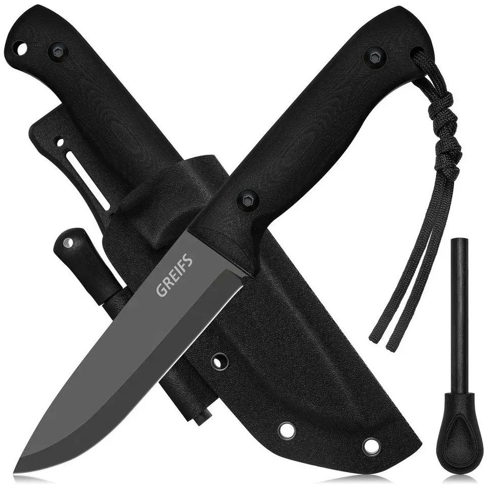 Dieses Angebot ist ein Beispiel für Angebote, die kürzlich auf dem eBay-Marktplatz in der Kategorie 42576 verfügbar waren. Bitte aktualisieren Sie die Suchergebnisse um aktuelle Angebote zu erhalten. ![]() ![]() GREIFS Outdoor-Messer aus D2 Stahl mit Kydex Holster und Feuerstahl, edles Survival Messer für die Bushcraft Ausrüstung, Jagdmesser, Schnitzmesser, Fahrtenmesser (Milan/Schwarz)