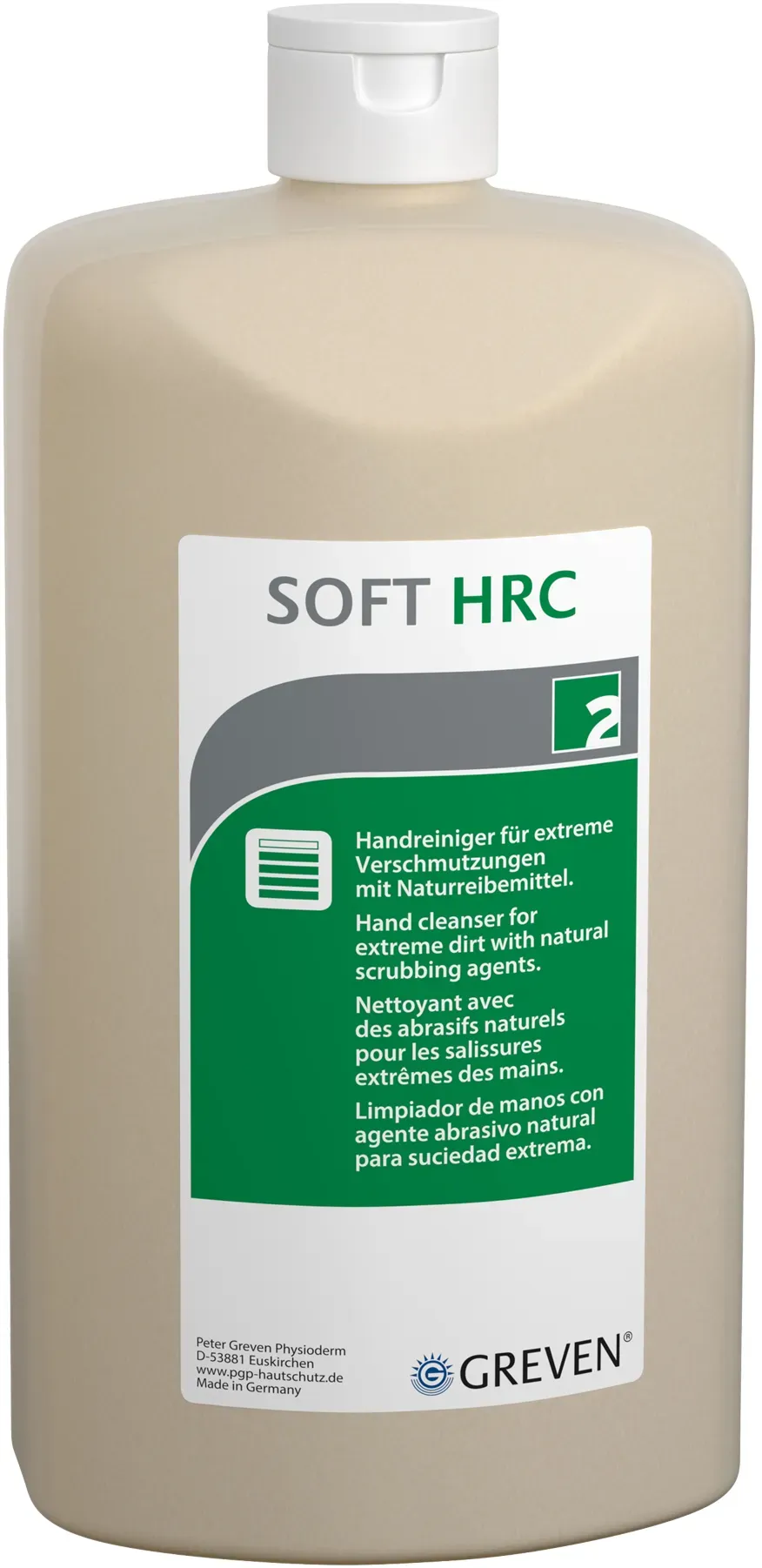 GREVEN - EAN: 4260029179491 - GREVEN SOFT HRC Handreiniger: effiziente Reinigung für extreme VerschmutzungenDer GREVEN SOFT HRC Handreiniger ist Ihre Lösung für die effektive Entfernung von stark haftenden und extremen Verschmutzungen. Entwickelt für anspruchsvolle Arbeitsumgebungen, bietet dieser Handreiniger sowohl gründliche Reinigung als auch Hautschutz.Für starke bis extreme Verschmutzungen geeignetDieser Handreiniger ist speziell für die Entfernung von besonders hartnäckigen Verschmutzungen konzipiert. Er entfernt effektiv Fette, öle, Metallstaub, Graphit und Ruß. Ob in Werkstätten, Produktionsstätten oder bei Reparaturarbeiten GREVEN SOFT HRC sorgt dafür, dass Ihre Hände gründlich sauber werden.Sanft zur Haut durch pH-hautneutrale FormelMit einem pH-hautneutralen Wert entspricht dieser Handreiniger dem natürlichen pH-Wert Ihrer Haut. Dies minimiert das Risiko von Hautirritationen und sorgt dafür, dass Ihre Haut auch bei häufiger Anwendung geschont wird. Der Handreiniger entfernt Schmutz, ohne die Haut auszutrocknen.Reibekörper aus Olivenkernmehl für zusätzliche ReinigungskraftDer GREVEN SOFT HRC Handreiniger enthält Reibekörper aus Olivenkernmehl. Diese natürlichen Partikel bieten eine effektive, aber sanfte Reinigungswirkung, die besonders bei starken Verschmutzungen hilfreich ist. Sie helfen, auch grobe Partikel von der Haut zu lösen, ohne sie zu beschädigen.Praktische Anwendung für Ihren ArbeitsalltagFür die Anwendung tragen Sie eine kleine Menge des ... ![]() ![]() Greven Handwaschpaste Soft HRC, Handreiniger flüssig, 250ml
