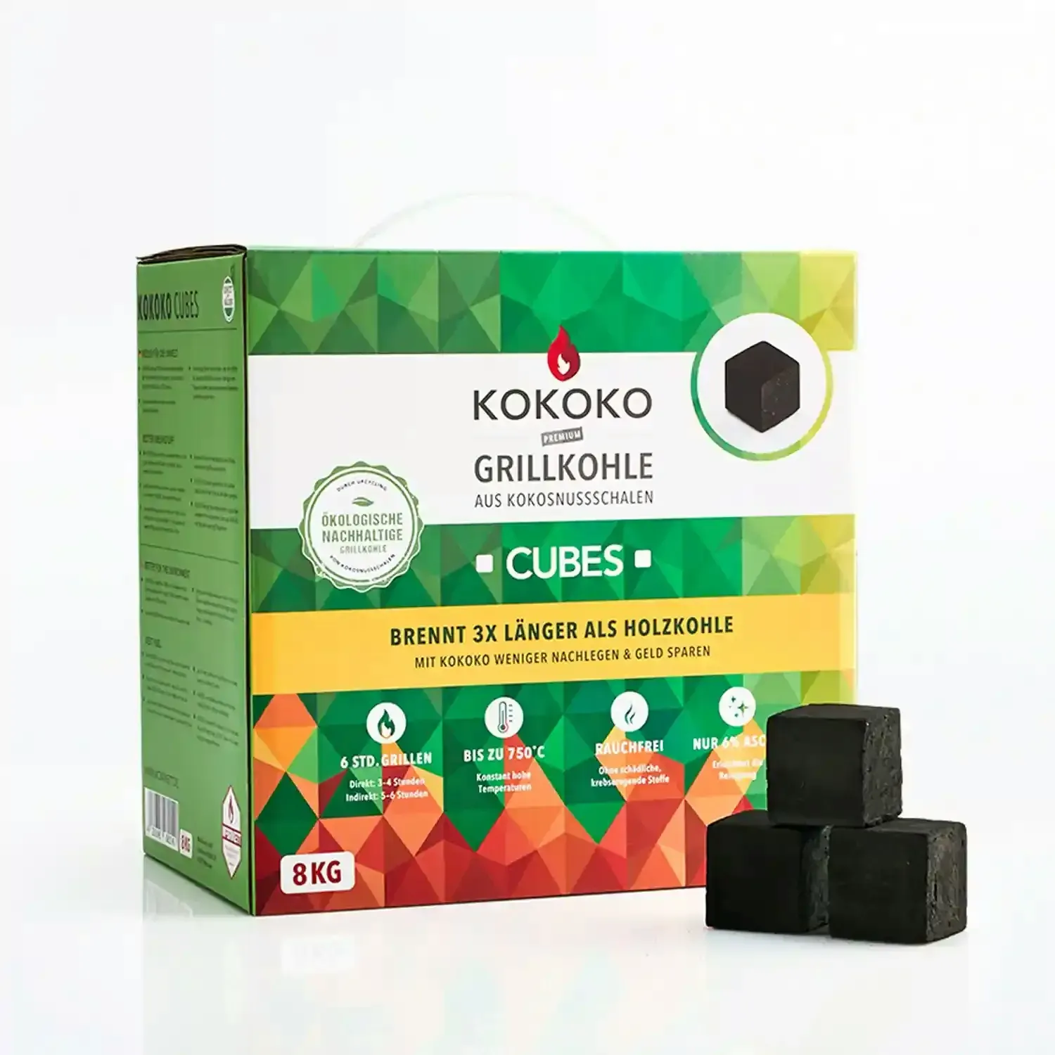 3,25 /kg - Kategorie: Grillzubehör - McBrikett - GTIN:4260348080133 - Die McBrikett KOKOKO LONG haben eine Brenndauer bis zu 8 Stunden auf konstanten Temperaturen. Somit lassen sich auch Großeinsätze in der Gatronomie bestens bewältigen. Das Hantieren mit der Glut wird zum Kinderspiel, weil KOKOKO nicht zerfällt .. - 25,99 Euro bei koempf24.de - gefunden von billiger.de McBrikett KOKOKO CUBES sind Premium Kokos-Grillbriketts, die für ihre lange Brenndauer und hohe Hitze geschätzt werden. ![]() ![]() McBrikett KOKOKO CUBES 8 kg