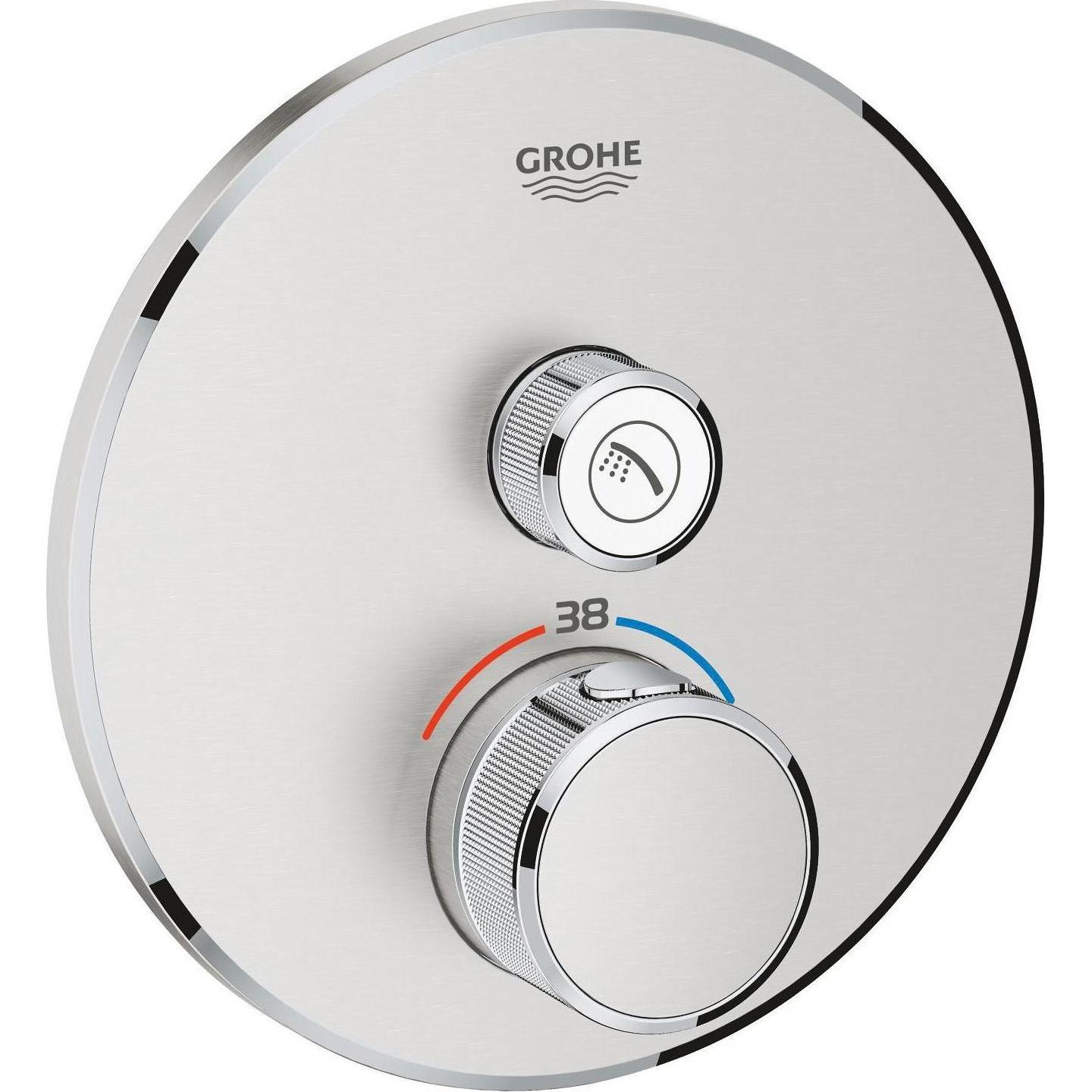 keine Angabe Gewöhnlich versandfertig in 3 bis 7 MonatenGROHE Grohtherm SmartControl - Thermostat (mit 3 Absperrventilen, Fertigmontageset, langlebige Oberfläche), supersteel, rund, 29121DC0