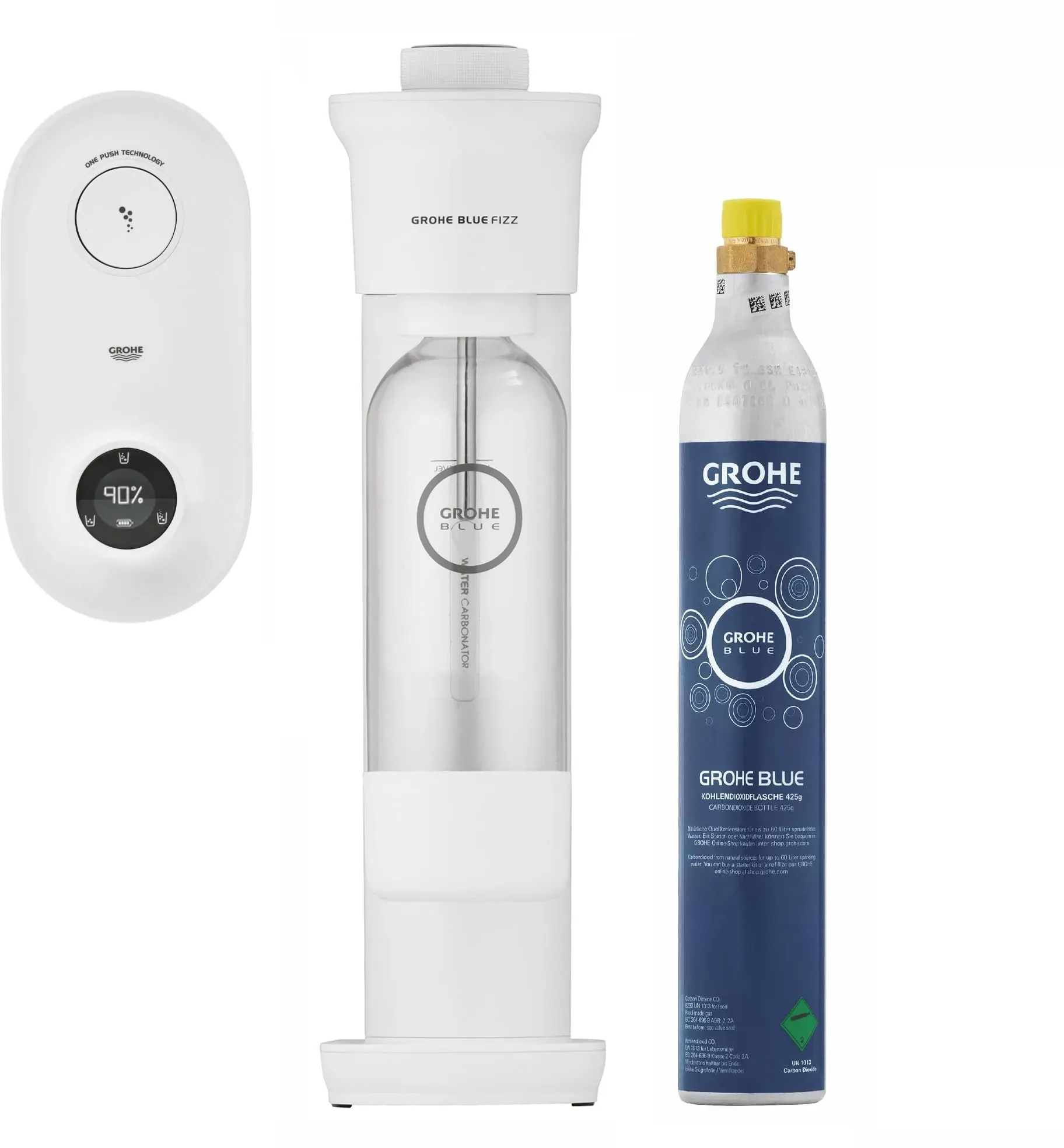 Zustand: Neu - Kücheninstallation - GROHE Grohe - - - ERFRISCHUNG AUF KNOPFDRUCK Wählen Sie mit GROHE Blue Fizz einfach die ideale Sprudelstärke aus Drehen für leicht sprudelndes, medium oder sprudelndes Wasser mit aktualisierender CO2 Füllstandsanzeige In dem Lieferumfang ist das GROHE Blue Fizz - Wassersprudler Starter Set (mit CO2-Füllstandsanzeige, 3 einstellbare CO2 Stufen, 1x CO2 Flasche, 2x 0,85l Wasserflasche + Reinigungspulver), weiß, 31945L00 und eine Bedienungsanleitung enthalten Hersteller ; Die bedingungen finden Sie unter Weitere technische Informationen; Ihre gesetzlichen Gewährleistungsrechte bleiben unberührt - bei Amazon.de Das Advanced Starter Set in Weiß von OTTO bietet eine solide Ausstattung für anspruchsvolle Nutzer. ![]() ![]()