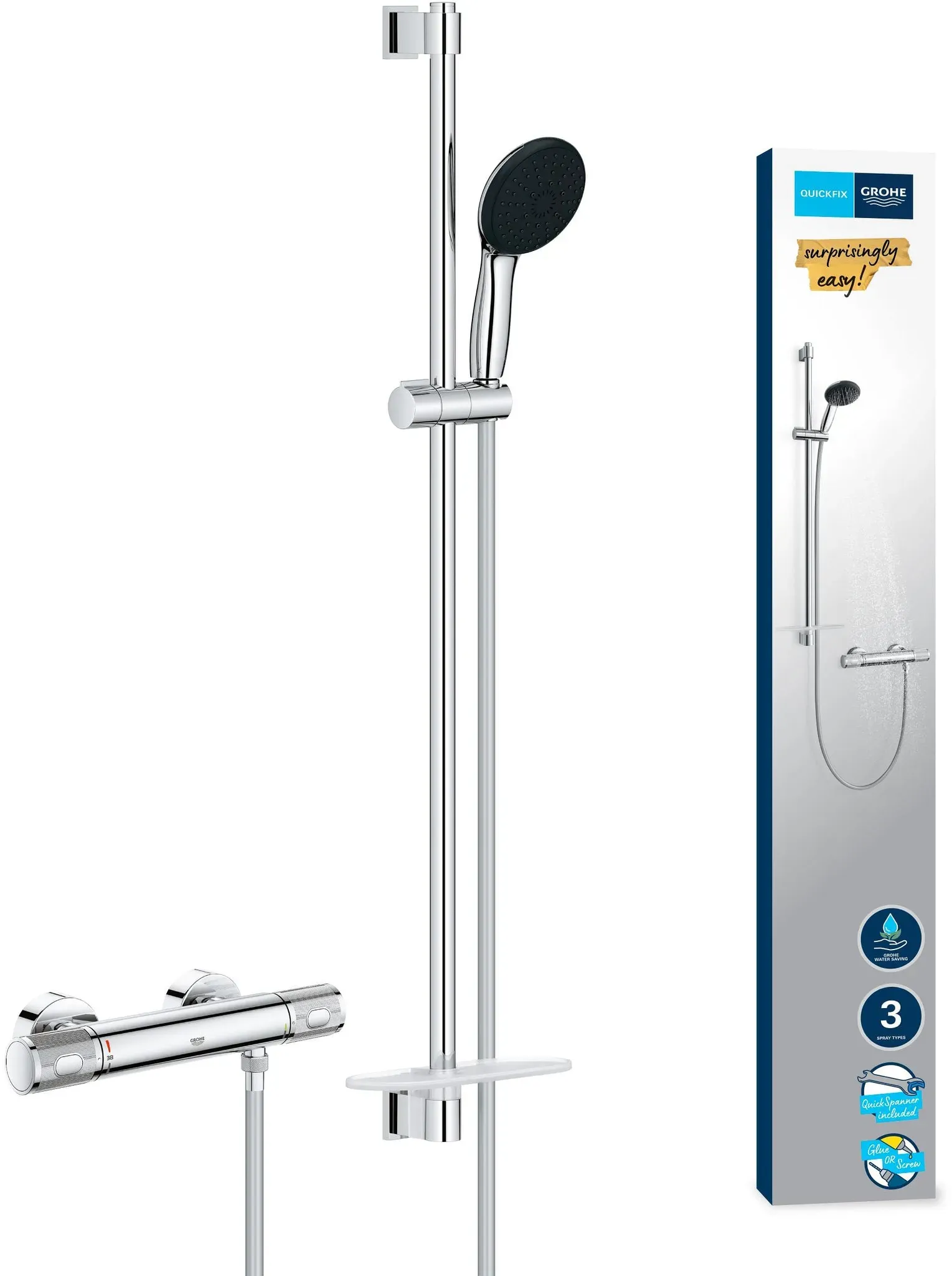 Auf Lager Versand durch AmazonGROHE Precision Feel, Badewannenarmatur, wassersparend (Thermostat mit stets kühler Oberfläche für Kinder, Duscharmatur mit Sicherheitssperre bei 38°C, Anti-Rutsch Griffe, 3in1 Tool), chrom, 34788000