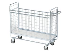 Rollwagen -regale Wohnen Aufbewahren Ordnen - - Vierwandwagen SERIE 100, Tragfähigkeit 100 kg, LxBxH 800 x 460 x 1120 mm, ab 5 Stk. Anlieferung = zerlegt. Fachbodenmaterial = Laminat. Tragfähigkeit = 100 kg. Länge = 800 mm. Breite = 460 mm. Höhe = 1120 mm. Innenlänge = 620 mm. Innenbreite = 425 mm. Seitenwandmaterial = Stahl. Oberfläche = galvanisch verzinkt. Radausführung = Gummibereifung. Radausstattung = 4 Lenkrollen. Raddurchmesser = 125 mm. Radlagerung = Kugellager. Produkttyp = Gitterwagen. Zolltarifnummer = 87168000. Herkunftsland = SWE. Bruttogewicht = 25 kg. Gewicht = 24 kg. Ideal für großes und sperriges Transportgut. Leichtgängig auch bei schwerer Last. Praktisch und vielseitig einsetzbar. Ideal für den Transport von Paketen oder ähnlichem geeignet. Das Gestell besteht aus glanzverzinkten 22-mm-Rohren. Die Etagenböden haben eine Stärke von 12 mm, sind hellgrau laminiert und langlebig. Leicht anpassbar, weil die Seitengitter abnehmbar sind oder geöffnet werden können. Pulverlackierte Fahrhandgriffe, stufenlos höhenverstellbar. Abnehmbare Längsseitengitter aus glanzverzinkten Vierkantrohren, die mit federnden Halterungen an den Stangen an den Stirnseiten befestigt werden. Maschengröße 50 x 82 mm. Höhe 620 mm. Höchstbelastung 100 kg. Vier Lenkrollen, 125 x 32 mm, mit grauer Gummilauffläche, Kugellagernabe und Drahtschutz. - Versandkostenfrei: true - - - bei Kaiserkraft - gefunden von shopping24 Dieser HelgeNyberg Vierwandwagen bietet mit seinen Maßen von 1180 x 460 x 1120 mm eine größere Ladefläche für umfangreichere Transportaufgaben. ![]() HelgeNyberg Vierwandwagen SERIE 100, Tragfähigkeit 100 kg, LxBxH 1180 x 460 x 1120 mm
