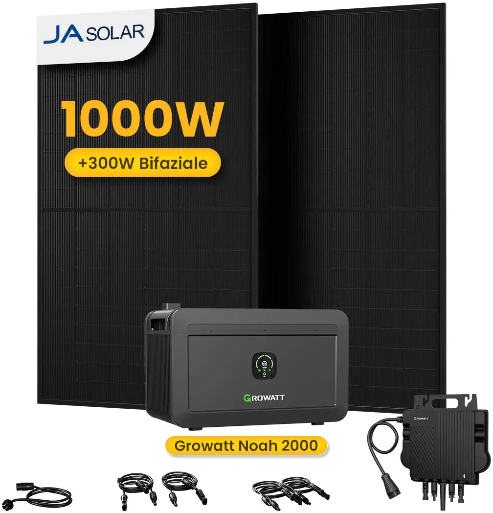 Kategorie: Solaranlagen - Hantech - GTIN:4068707928313 - Bifaziale Solarmodule: Durch die bifazialen Panels können Sie bis zu 30% mehr Energie gewinnen. Die Technologie ermöglicht es, Sonnenlicht auf beiden Seiten der Module (Glas-Glas) zu nutzen. Zudem können Sie bis zu 2h länger Strom produzieren, 1h früher und 1h länger pro Tag. Premium Bauteile: Das 880W Balkonkraftwerk besteht aus hochwertigen Bauteilen. 2x bifaziale 440W Trina Solar Vertex S+ TSM-440NEG9RC.27 Solarmodule, 1x Growatt NEO 800M-X Wechselrichter, 1x Growatt NOAH 2000 Balkonkraftwerk Speicher, 1x 5m Kabel zur Steckdose. Energie immer im Blick: Per Webplattform oder App überwachen Sie den gewonnenen Sonnenstrom per WLAN-Funktion in Echtzeit. Sie sind direkt informiert über tägliche- & jährliche Solarerträge, CO2-Einsparungen & Geldeinsparungen! Dank einfacher Einrichtung und intuitiver Bedienung direkt startklar! Speicher: Sparen Sie bis zu 3.951 extra an Stromkosten mit dem 2048Wh Balkonkraftwerk Speicher. Einfach den Speicher in 5 Minuten ohne Fachkentnisse zwischen Solarmodul & Wechselrichter schalten und lossparen. Profitieren Sie von 6.000 Ladezyklen und einem hohen Wirkungsgrad von 98%. - 700,00 Euro bei Amazon Marketplace Automotive - gefunden von billiger.de Dieses Angebot ist ein weiteres preiswertes Balkonkraftwerk mit Speicher und Solarmodulen, das eine solide Leistung für den Preis liefert. ![]() ![]() Growatt NOAH 2000 Balkonkraftwerk mit Speicher, 2048/4096/6144/8192Wh, 890/1000/1780/2000W Bifaziale Solarmodule