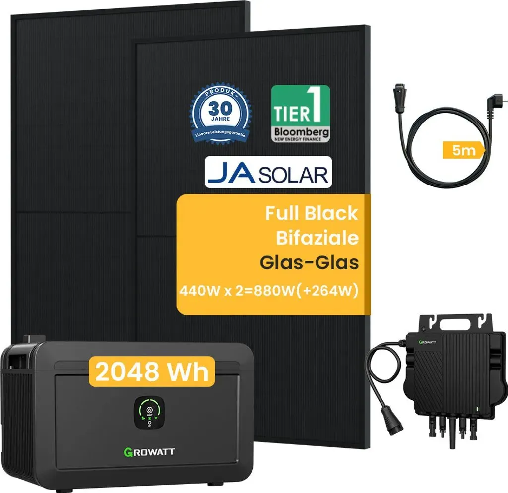 ![]() ![]() Growatt NEXA 2000 All-in-One Speicher für Balkonkraftwerke deal - 2048Wh Speicher / mit 2 x 440 Full Black Solarmodule / Powerness Express