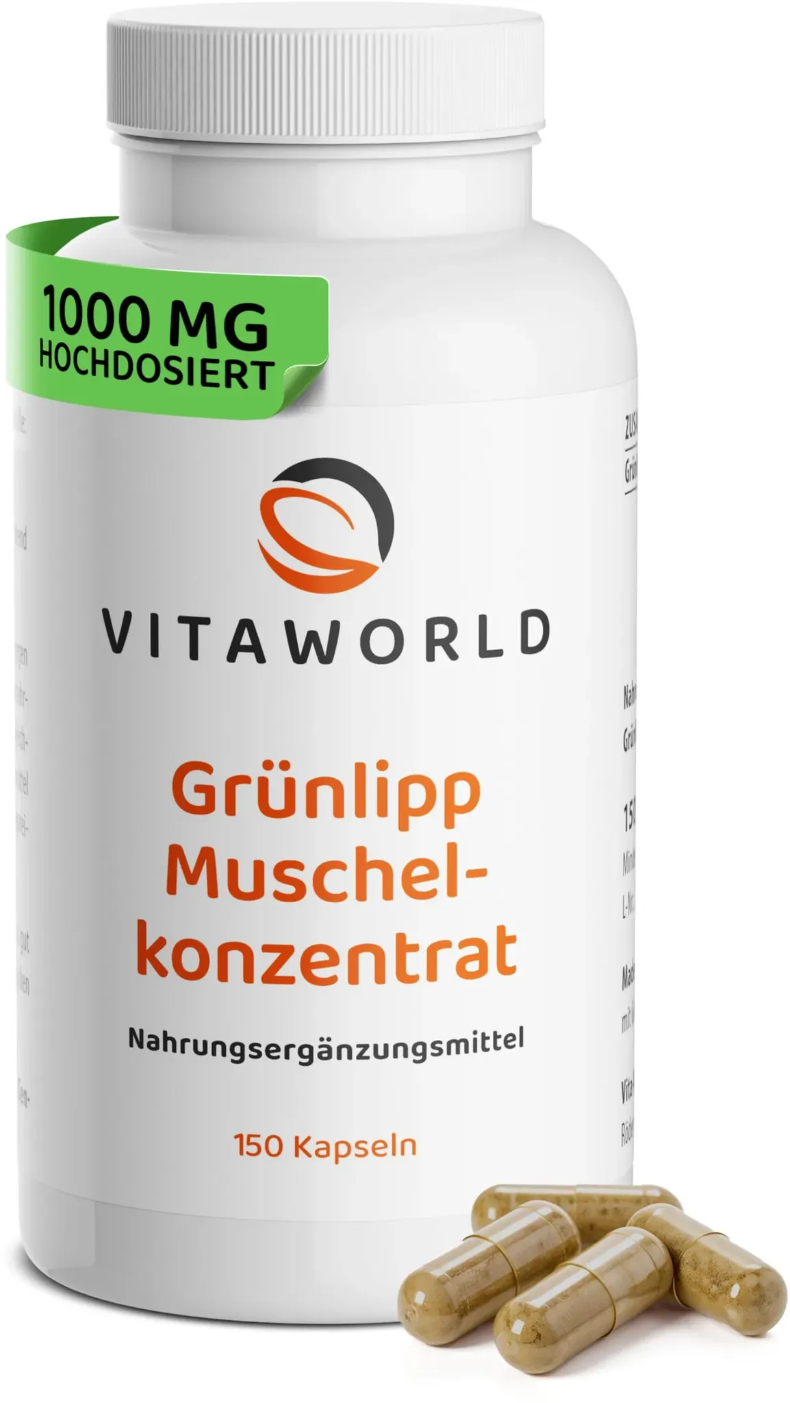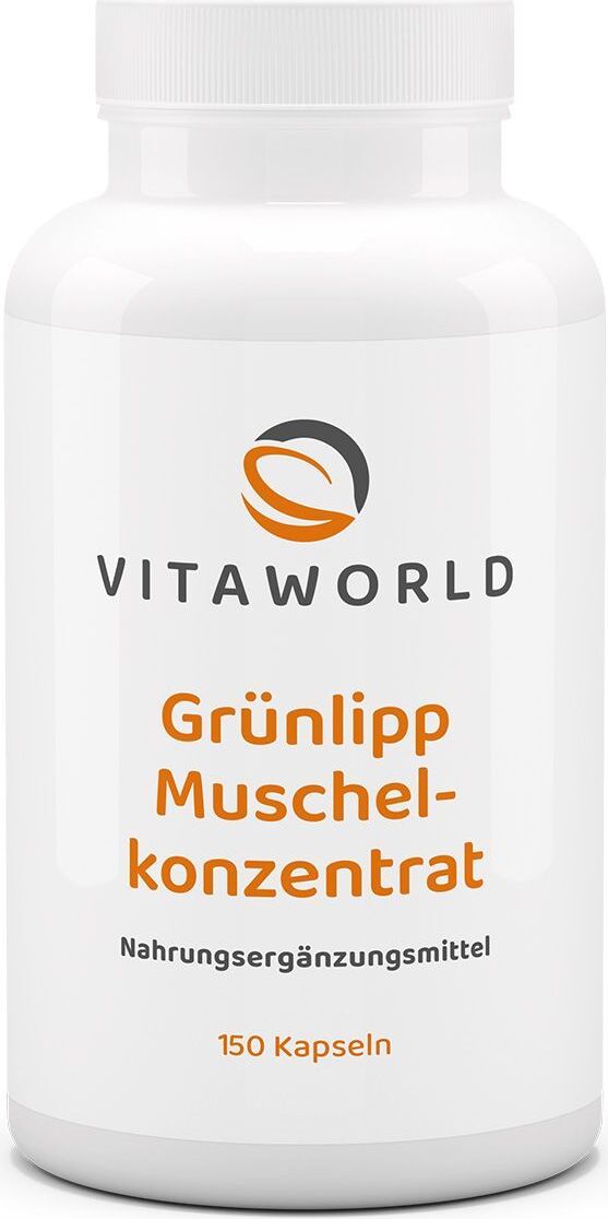 Auf Lager Versand durch AmazonGrünlippmuschel Konzentrat ? 1000mg reines Grünlippmuschelpulver pro Tag (150 Kapseln) ? aus neuseeländischer Grünlippmuschel ? für Gelenke & Knorpel ? ohne Zusätze, laborgeprüft ? vitaworld