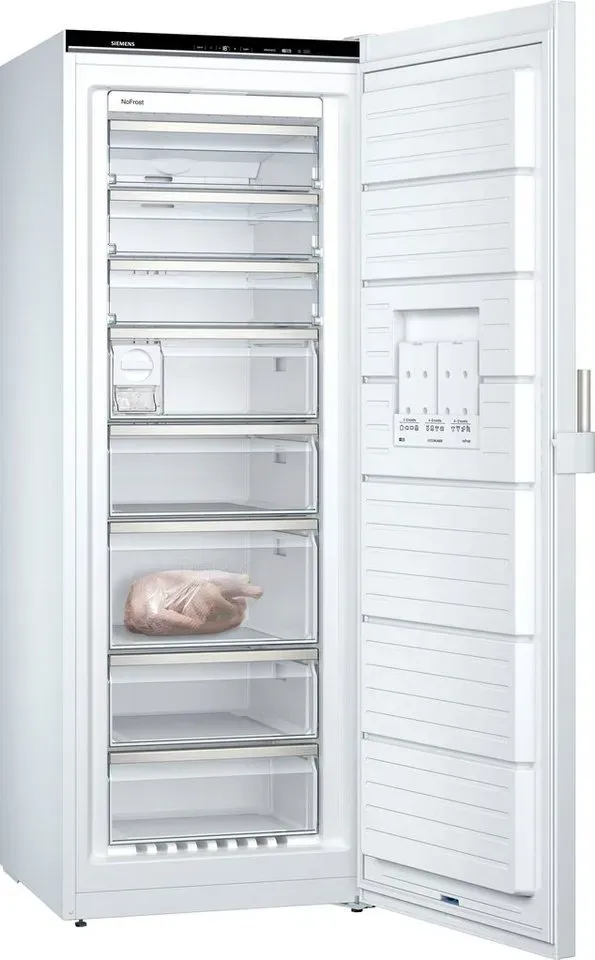 keine Angabe (Amazon Prime) Auf Lager Versand durch AmazonSiemens GS58NAWCV iQ500 Gefrierschrank Freistehend, 191 x 70 cm, 366 l, noFrost - nie wieder abtauen, bigBox für großes Gefriergut, varioZone - flexible Schubladen und Glasablagen, Weiß