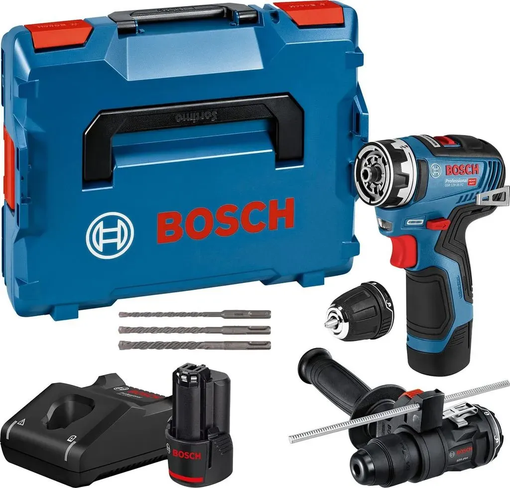 Werkzeug & Werkstatt Elektrowerkzeuge Bohrmaschinen & Schrauber Akkuschrauber, Akkubohrer - EAN:3165140936910 - - gefunden von Kelkoo Ein komplettes FlexiClick System mit zwei Akkus, Ladegerät, zwei Aufsätzen, Zusatzhandgriff und L-BOXX, das maximale Flexibilität bietet. ![]() ![]() Bosch Professional 12V System Akku-Bohrschrauber GSR 12V-35 FC - FlexiClick System (inkl. 2x Akku GBA 12V 3.0Ah, GAL 12V-40, 2x FlexiClick Aufsätze, Zusatzhandgriff, Tiefenmaß, L-BOXX)
